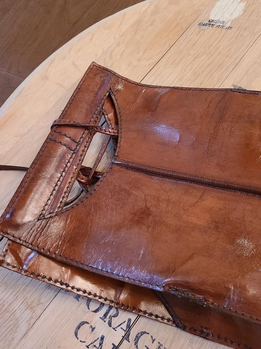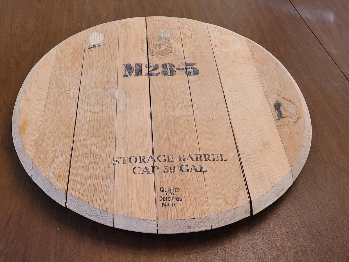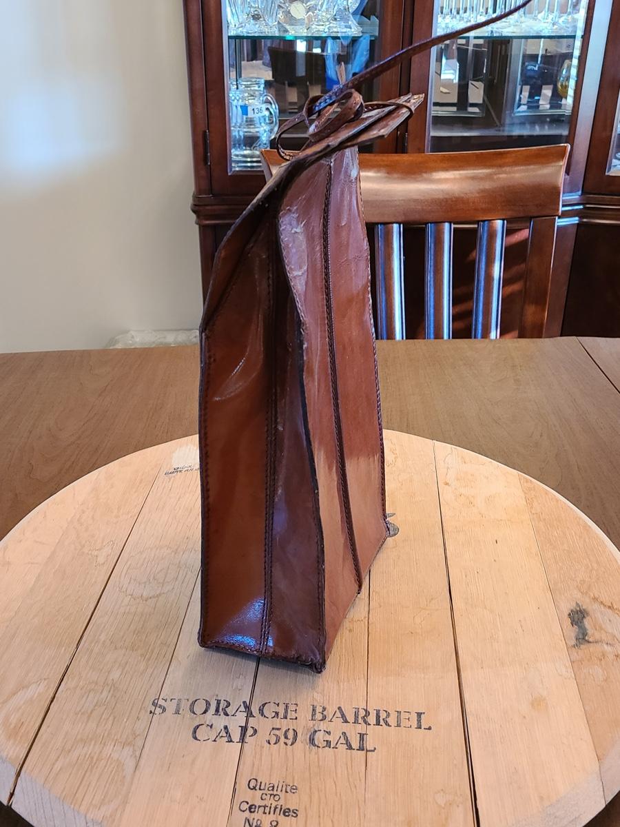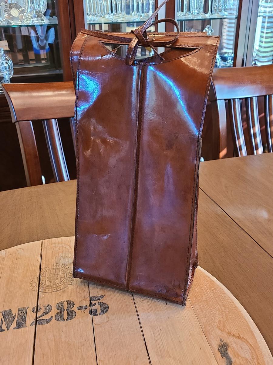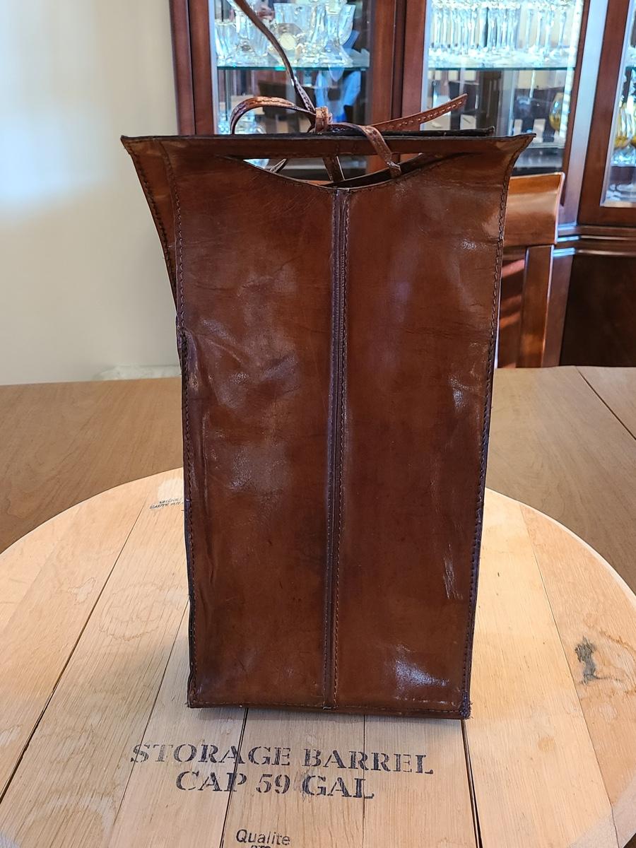 Lot 162: Leather Wine Satchel, and Wine Barrel Top Lazy Susan