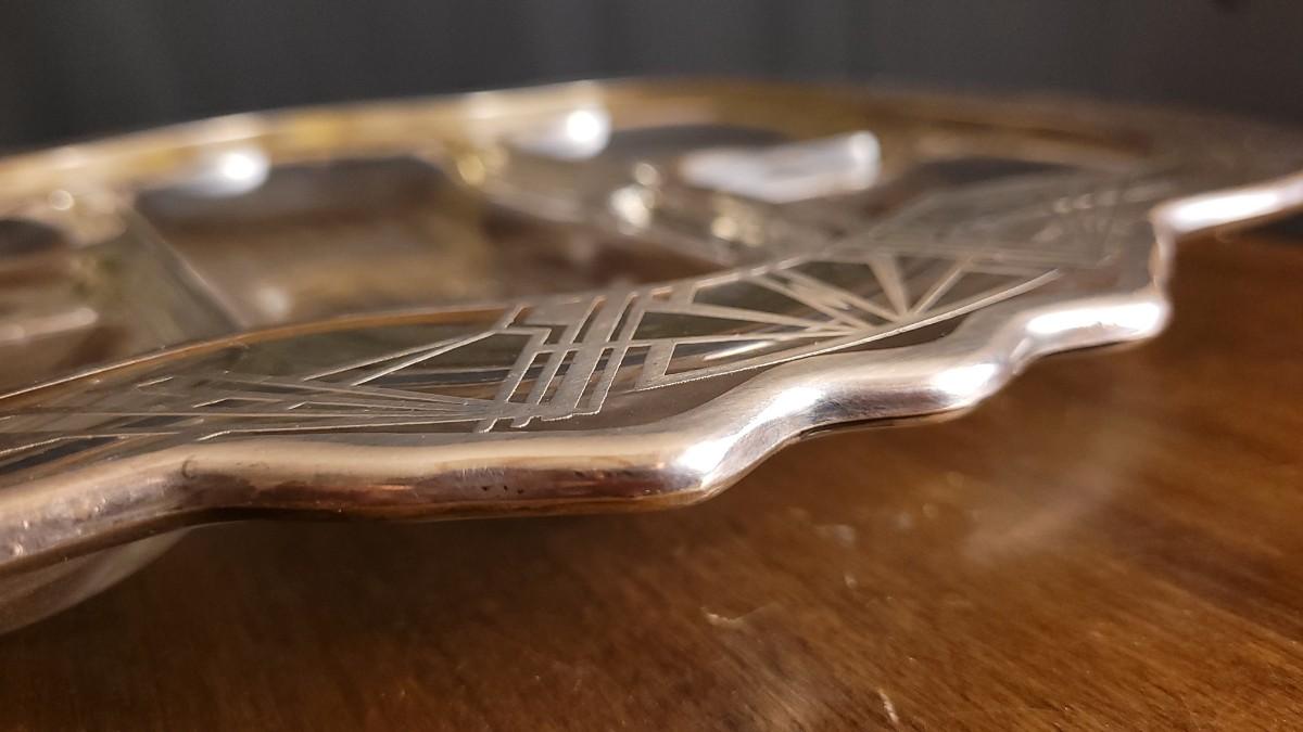 This segmented Fancy Sterling Silver Inlay Tray is just in time for the holidays and will definitely add a timeless accent to your next snack dish. Measures 12.5" x 10.5".