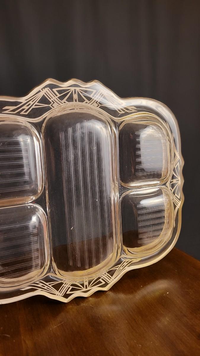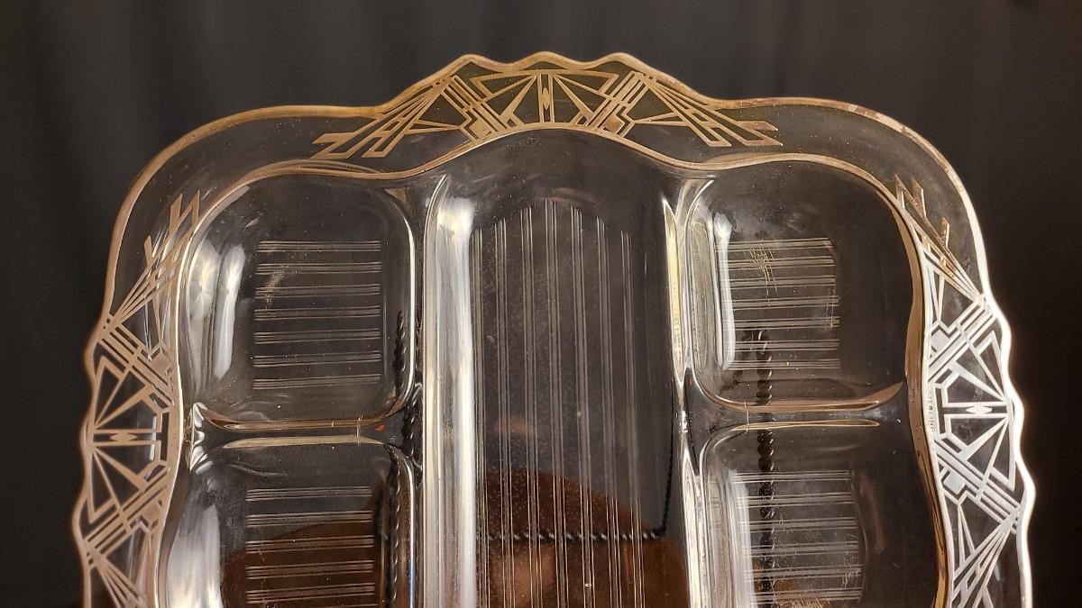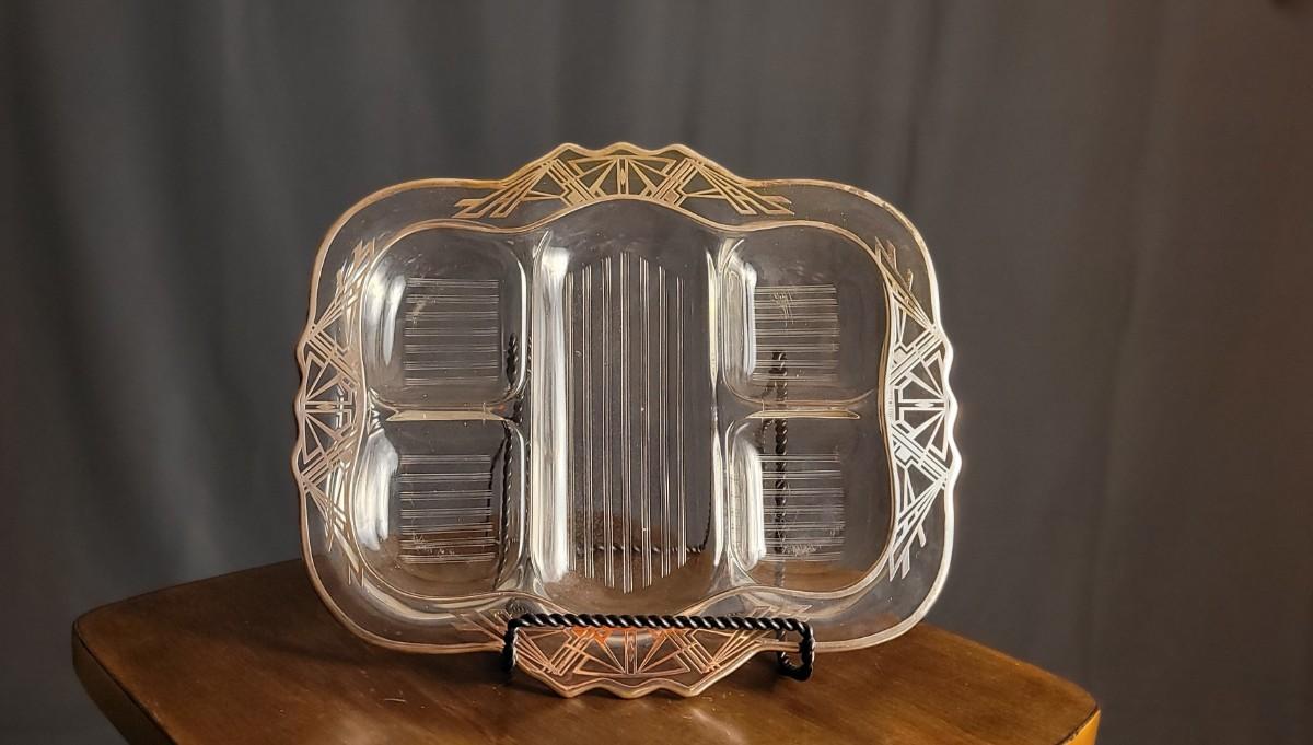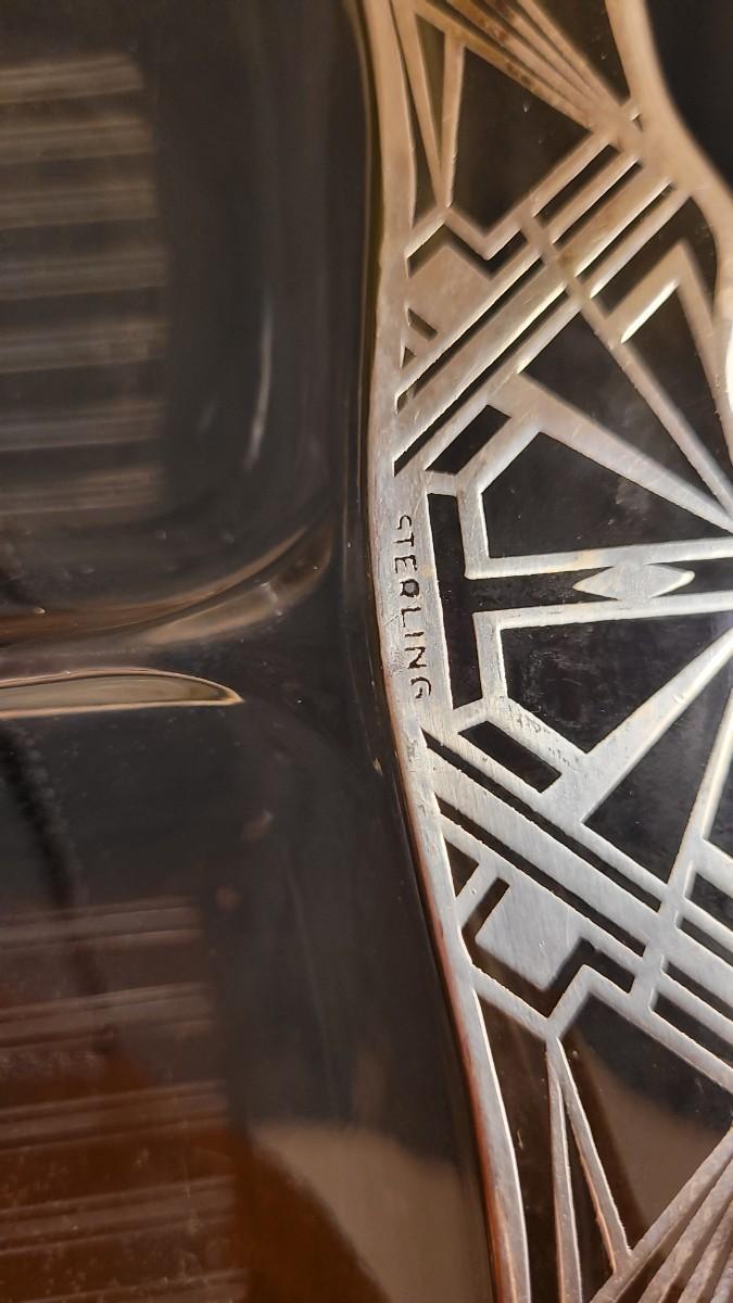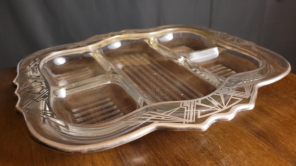 Lot 162: Antique Sterling Silver Inlay Fancy Glass Serving Dish Portioned