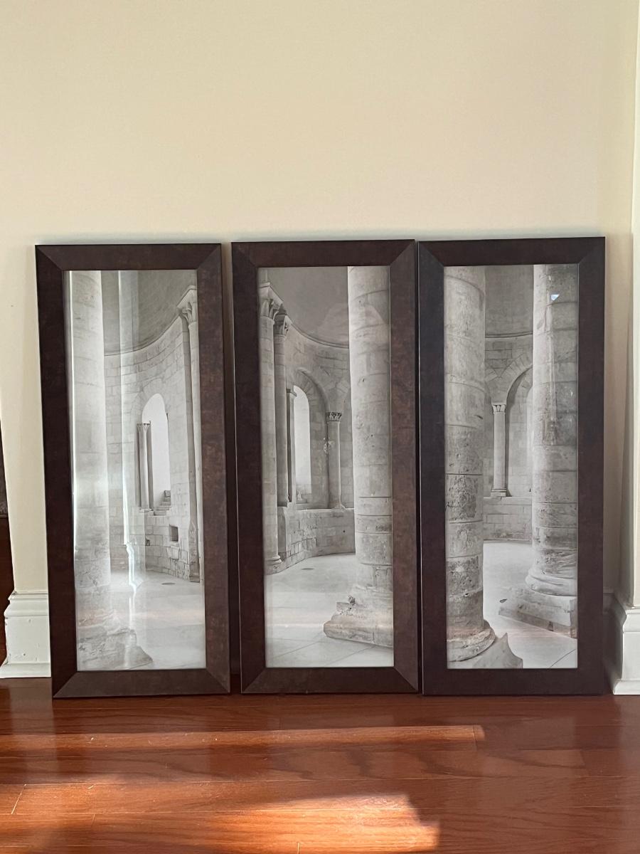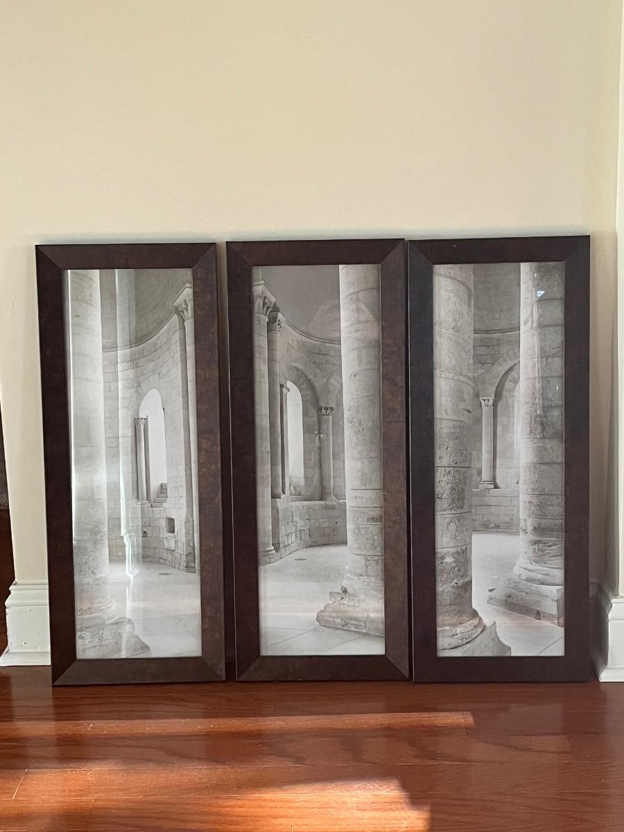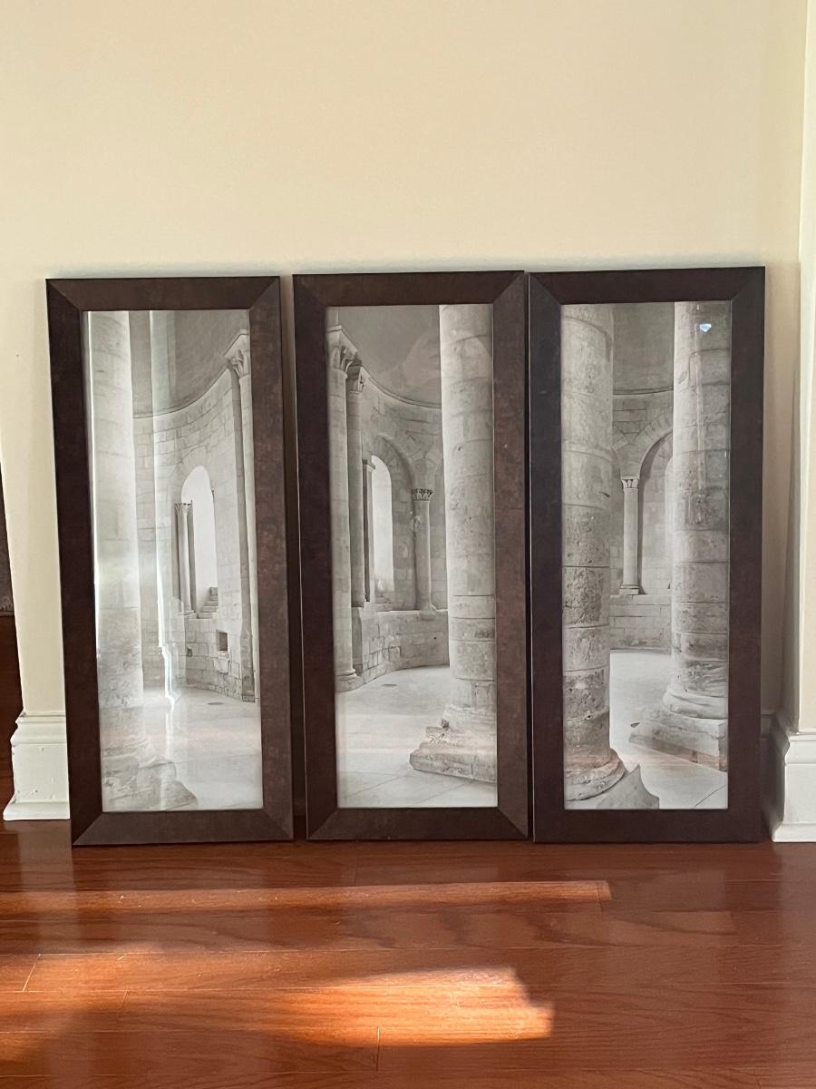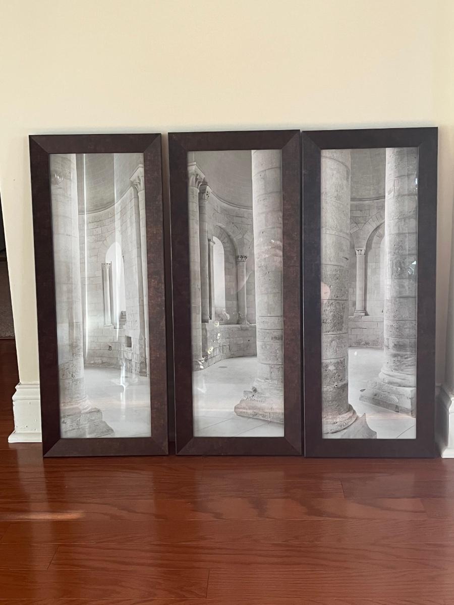 Set of 3 framed prints measuring approximately 15 x 26 each.