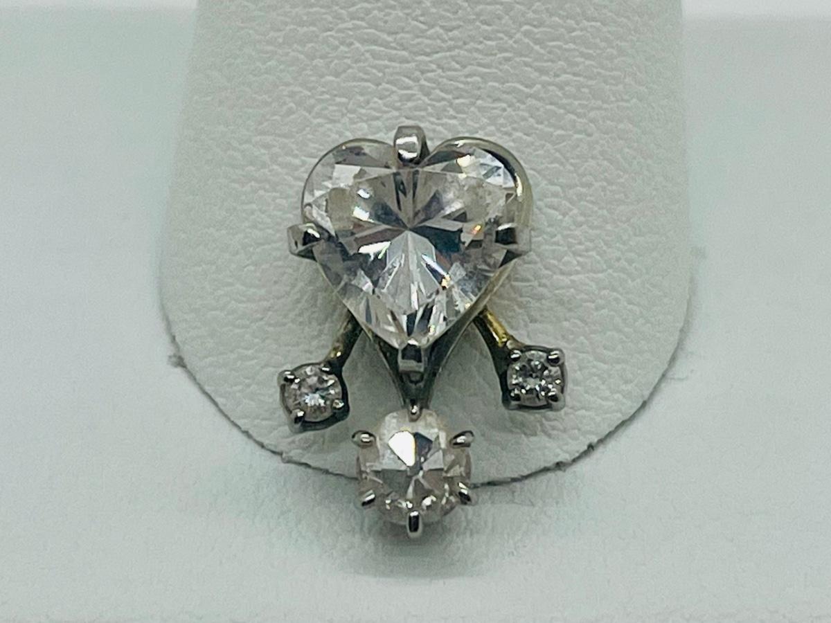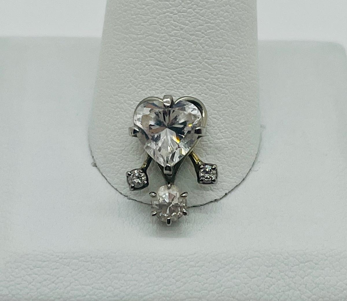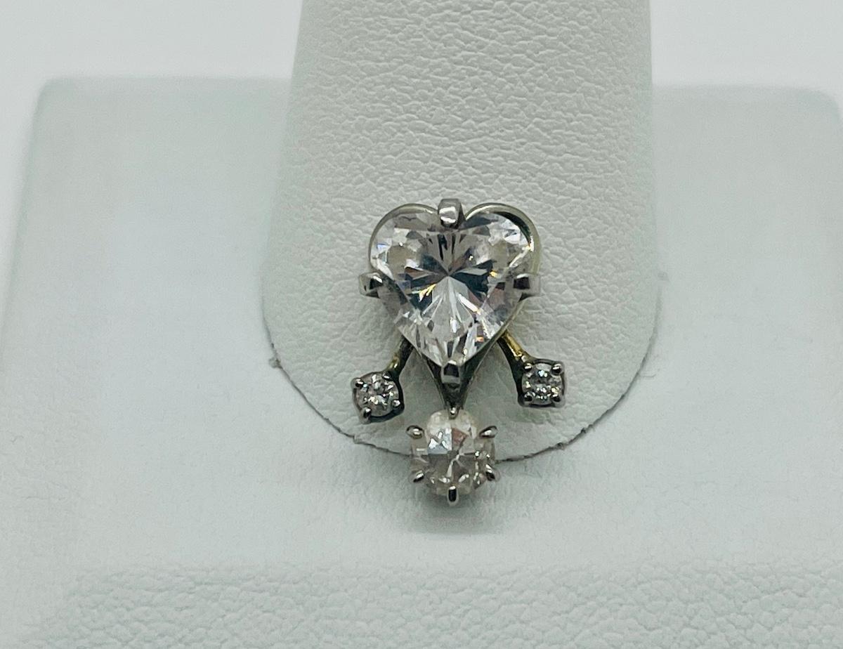 Lot 162: White Sapphire Heart with 3 Diamonds Below, Set in 14k White Gold