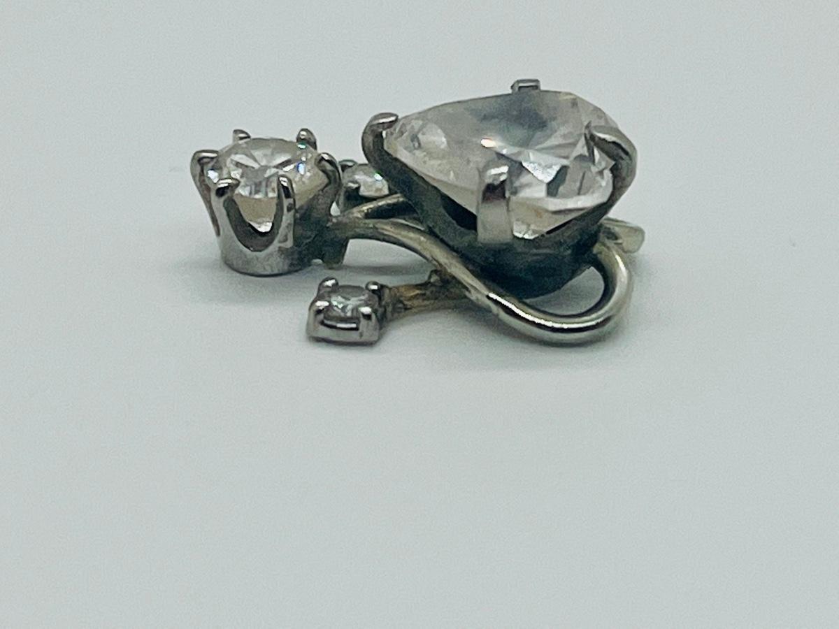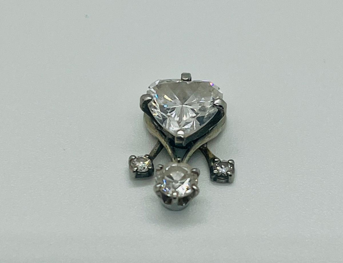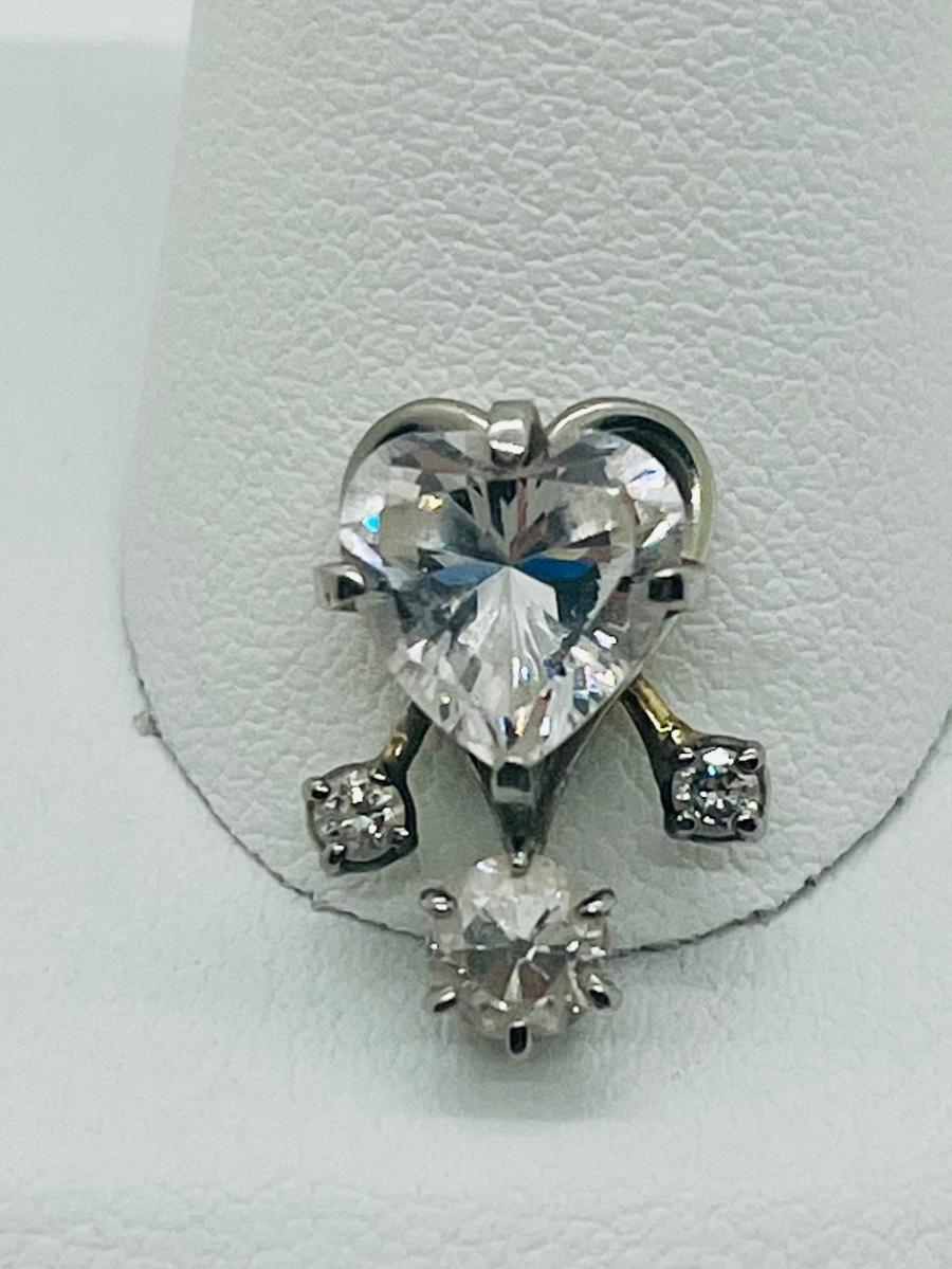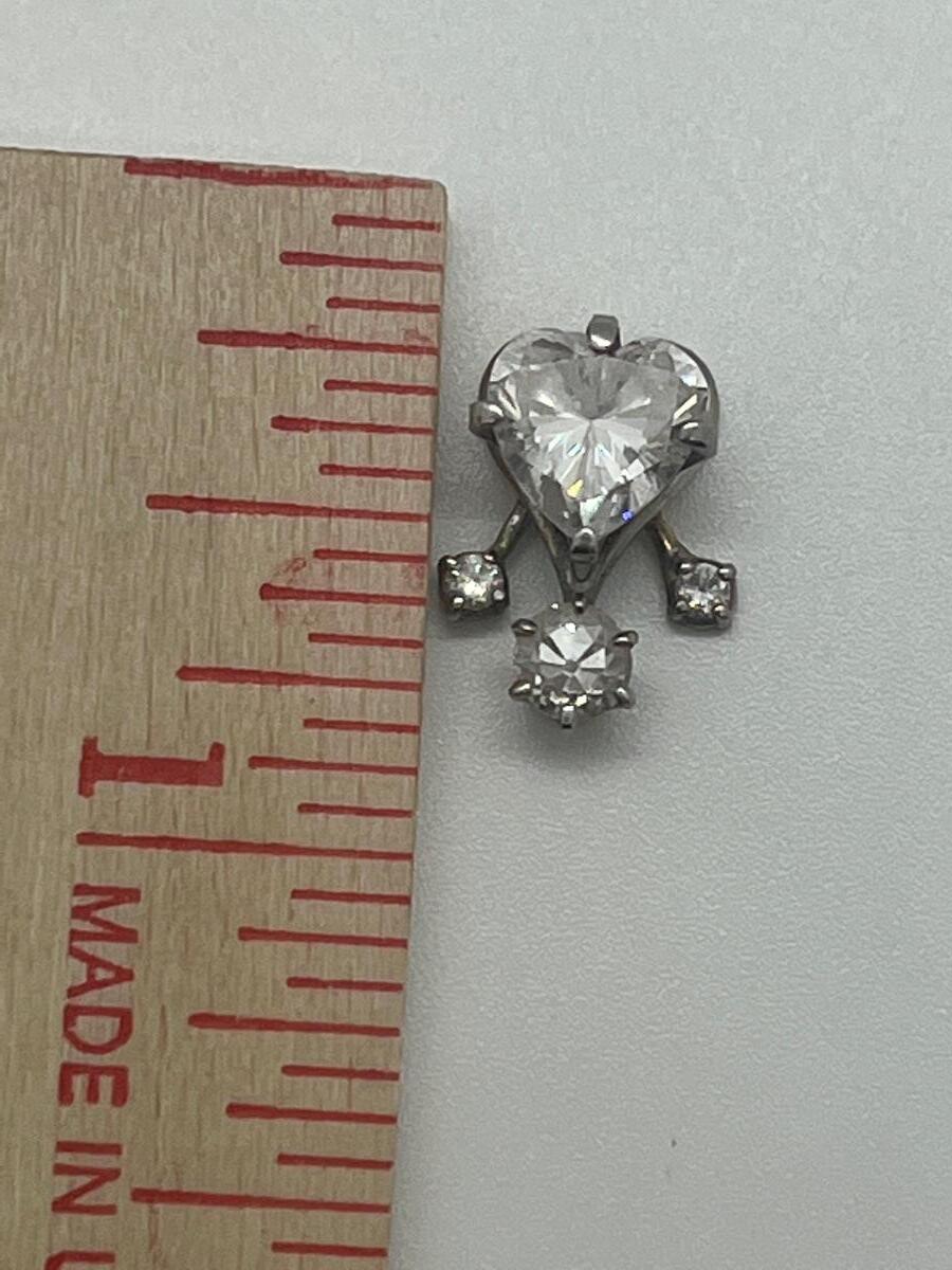 Lot 162: White Sapphire Heart with 3 Diamonds Below, Set in 14k White Gold