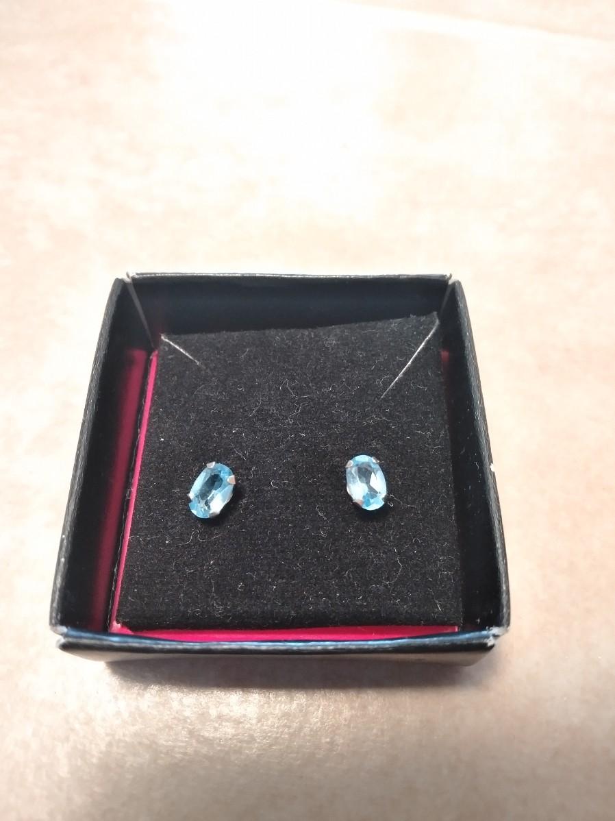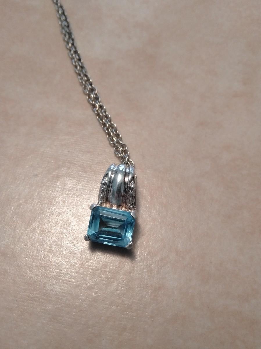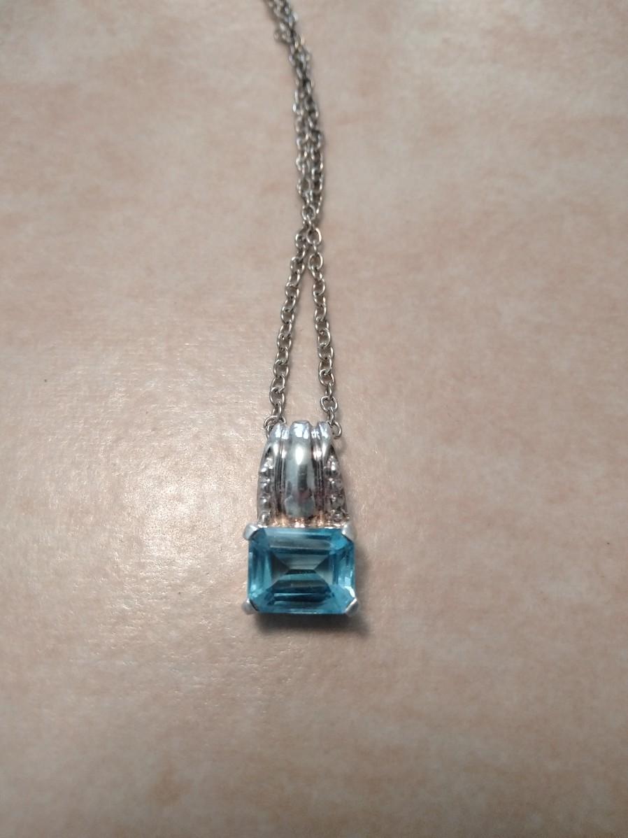 BLUE TOPAZ AND STERLING PENDANT ON A SILVER-TONE CHAIN AND BLUE TOPAZ PIERCED POST EARRINGS