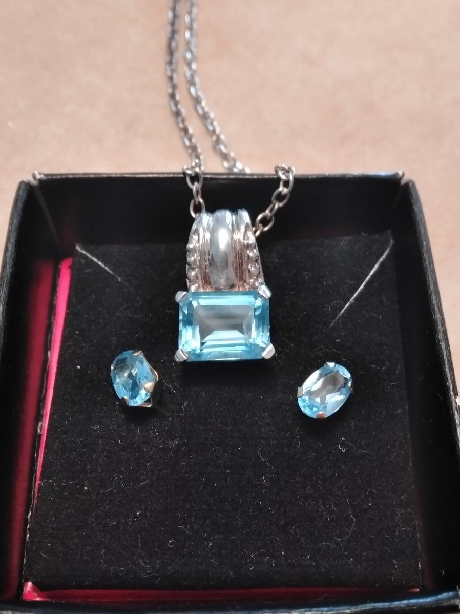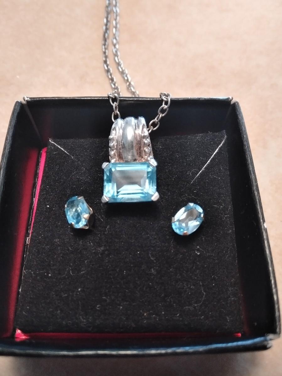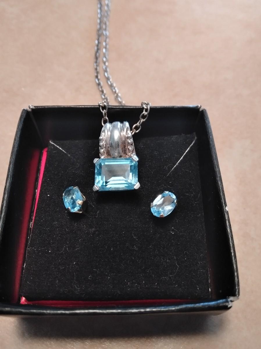 LOT 162 BLUE TOPAZ AND STERLING PENDANT NECKLACE AND EARRINGS