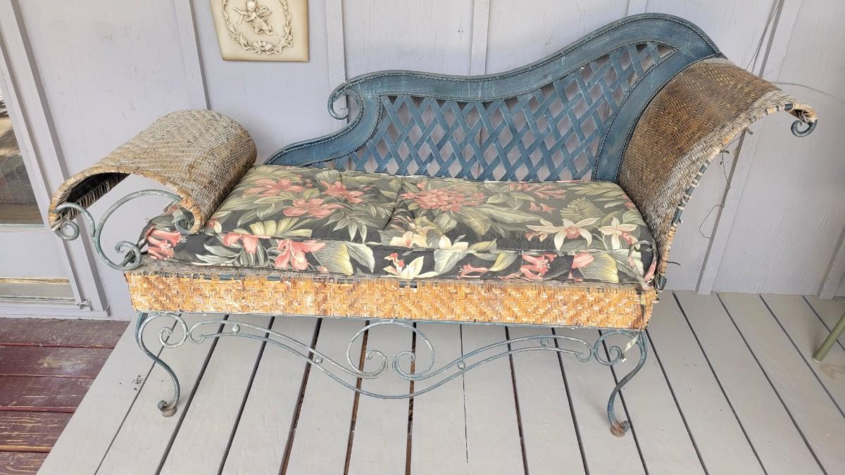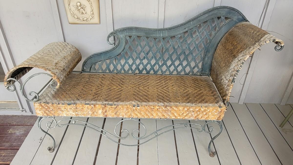 Lot 162: Vintage Woven Wicker and Metal Fainting Couch