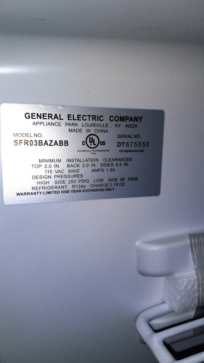 GENERAL ELECTRIC MINI REFRIGERATOR MODEL SFR03BAZABB