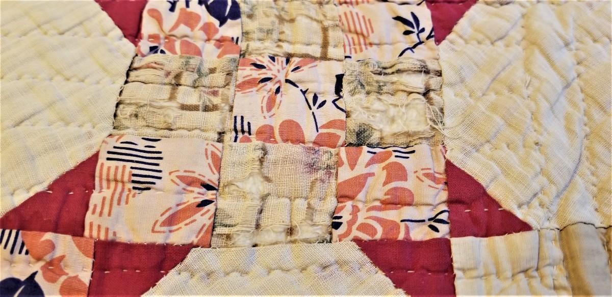 One of the older quilts in the sale - this one has a few small squares that are a bit "tatty" - easy repair - nice display quilt. 83" long, 64.5" across.