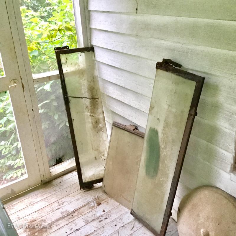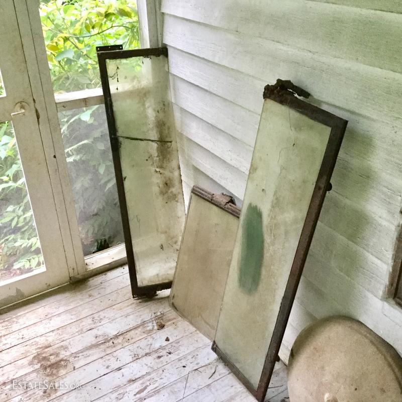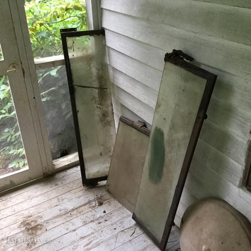 Possible old Jeep windows (cannot confirm) and large Cast Iron pieces (maybe from a carriage or car) large windows measure 42"l x 11"w and largest iron piece is 59.5"l x 22.5"w. This lot is available for local pick up in Saluda, NC.