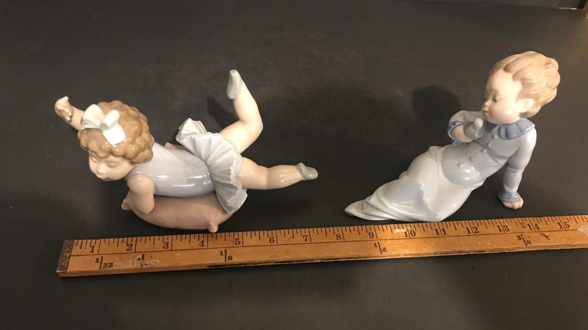 Baby Boy with Pacifier #7082 Mini Ballet Girl #5109. All Lladros are in excellent vintage condition without original boxes, except where noted. All items have been inspected and any damages or imperfections have been photographed and noted to the best of our knowledge and ability. It is the responsibility of the buyer to inspect all pictures, as they are the best representation of the items. The pictures show condition, measurements if taken, and what is included in the lot. Upon pickup, it is the responsibility of the buyer to inspect their items prior to leaving the premises. Once the items leave the premises, there will be no refunds or returns. Buyers are also responsible for bringing their own boxes and packing materials for their items. Thank you.