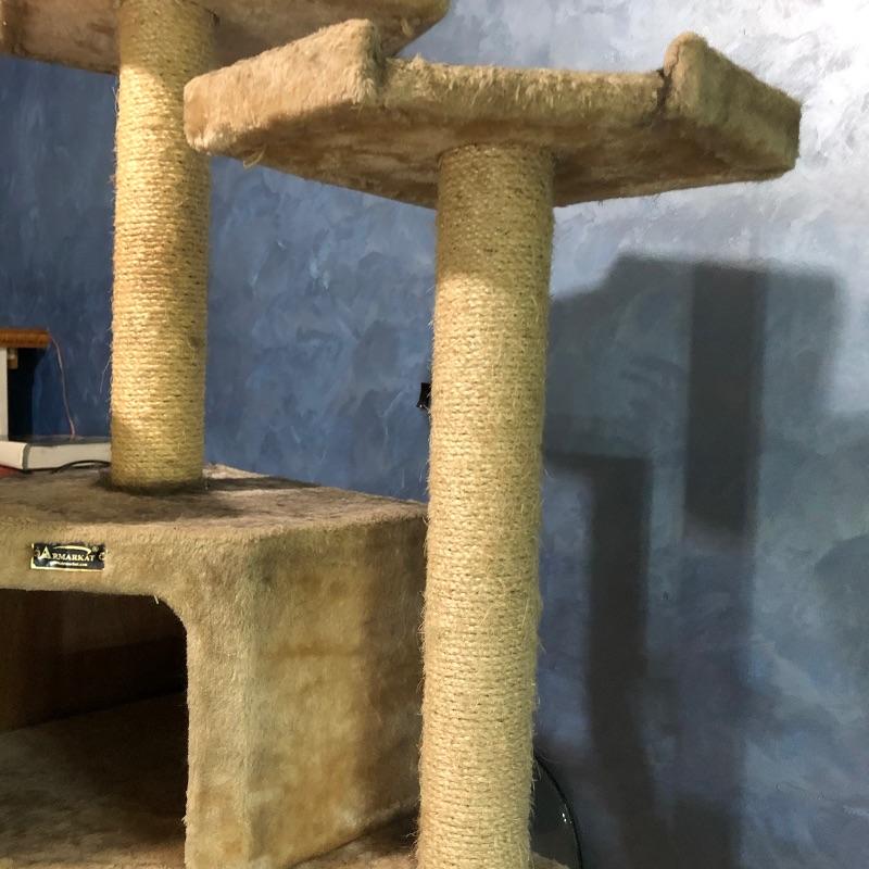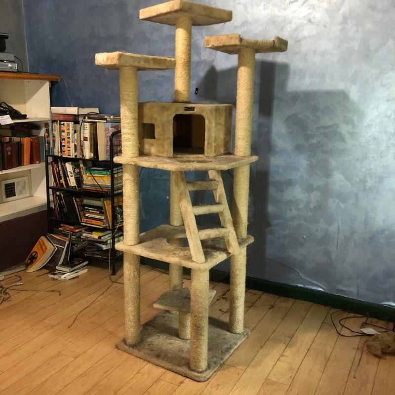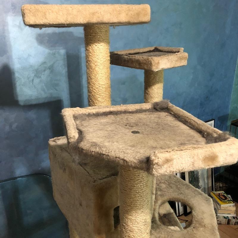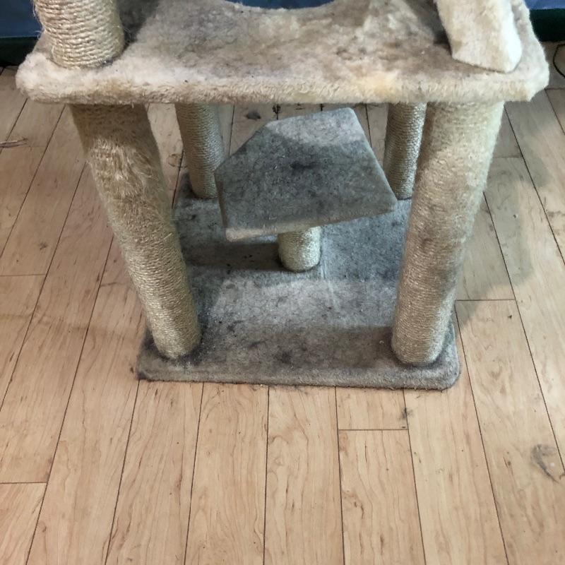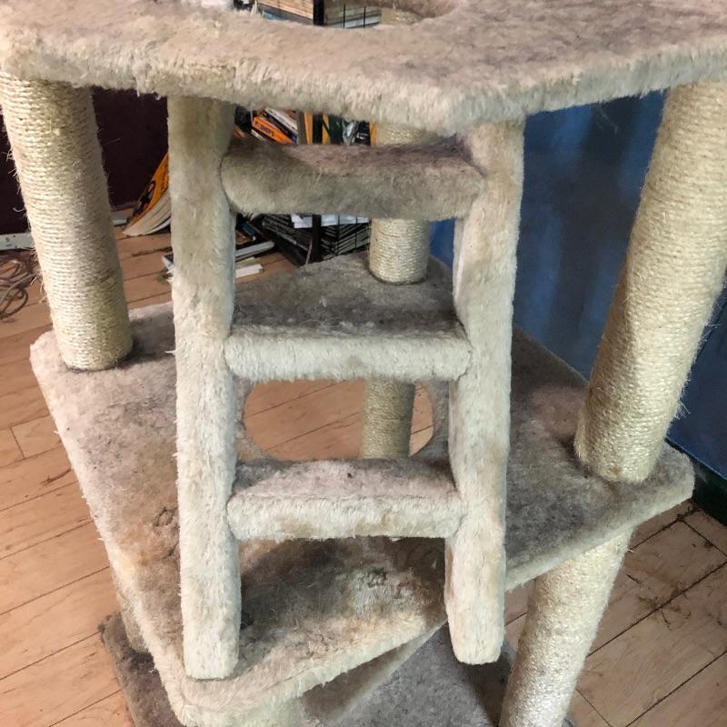 Do you love your cats enough to get them this deluxe cat multi story hotel! This Armarkat actually has 3 levels plus stairs, hideaways, scratch mats and more. It does need a really good vacuum but the good news is that it is very quick and easy to dismantle and no tools required. We have thrown in a bowl, brushes, can lids and much more, see images.
