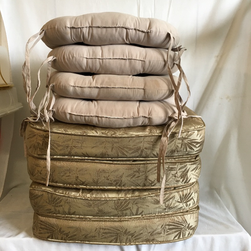 Two sets of chair cushions. Make your chairs more comfortable with either of these comfortable and attractive cushions. Largest cushions measure 20” x 21” x 3.25”.