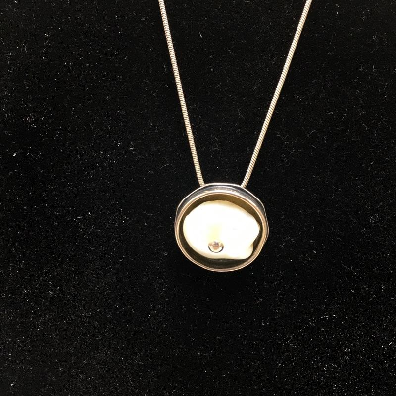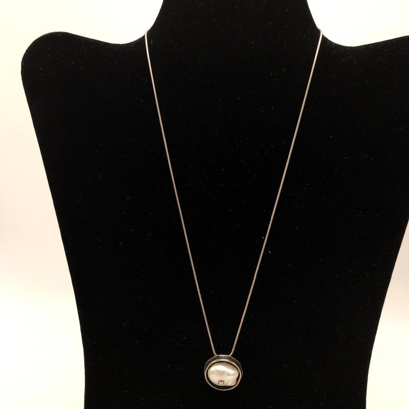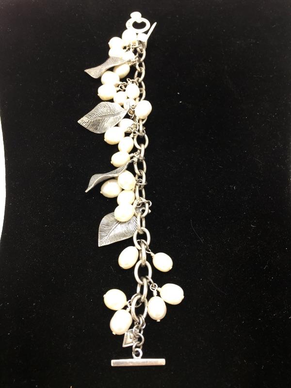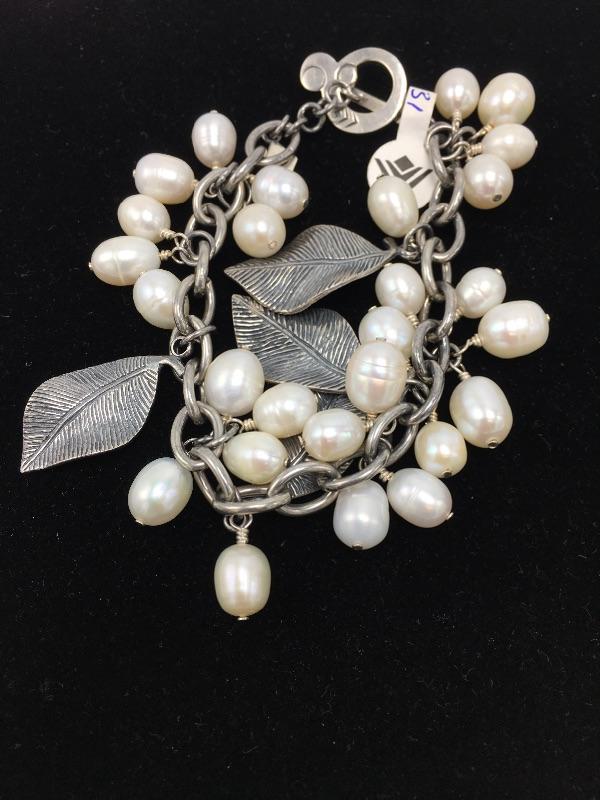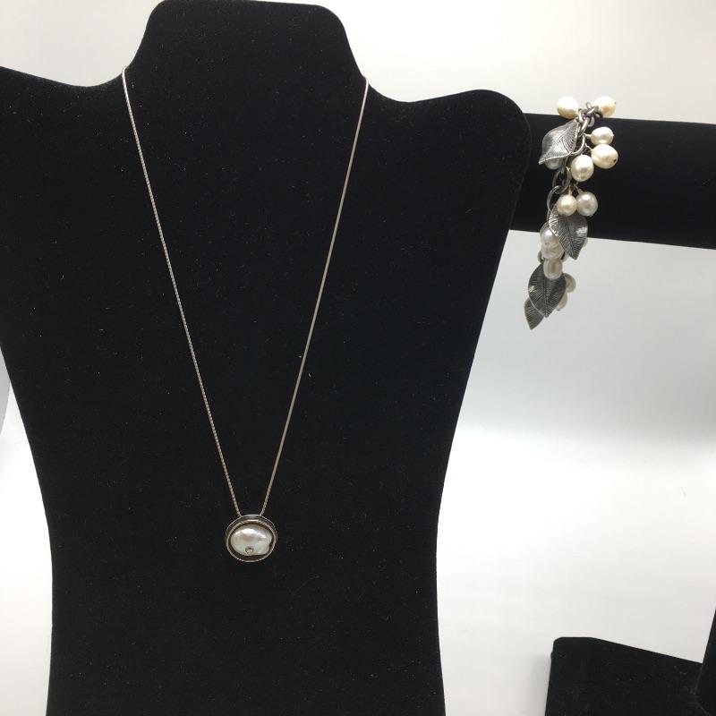 Silpada freshwater pearl and sterling silver bracelet that fits up to a 7.5” wrist and a round sterling pendant that cradles a freshwater pearl on a sterling silver necklace that measures 17.75” long.