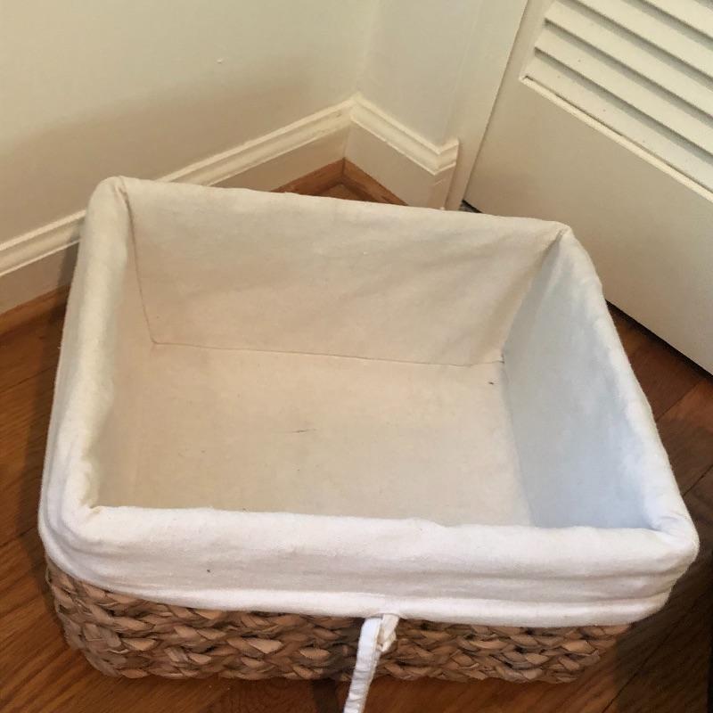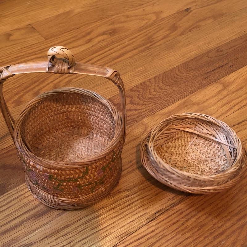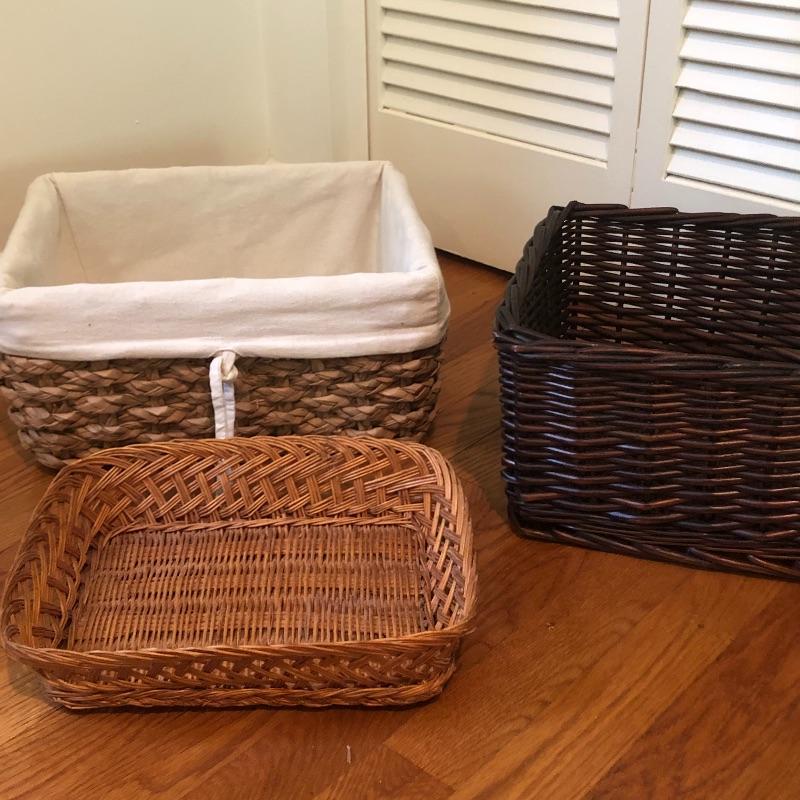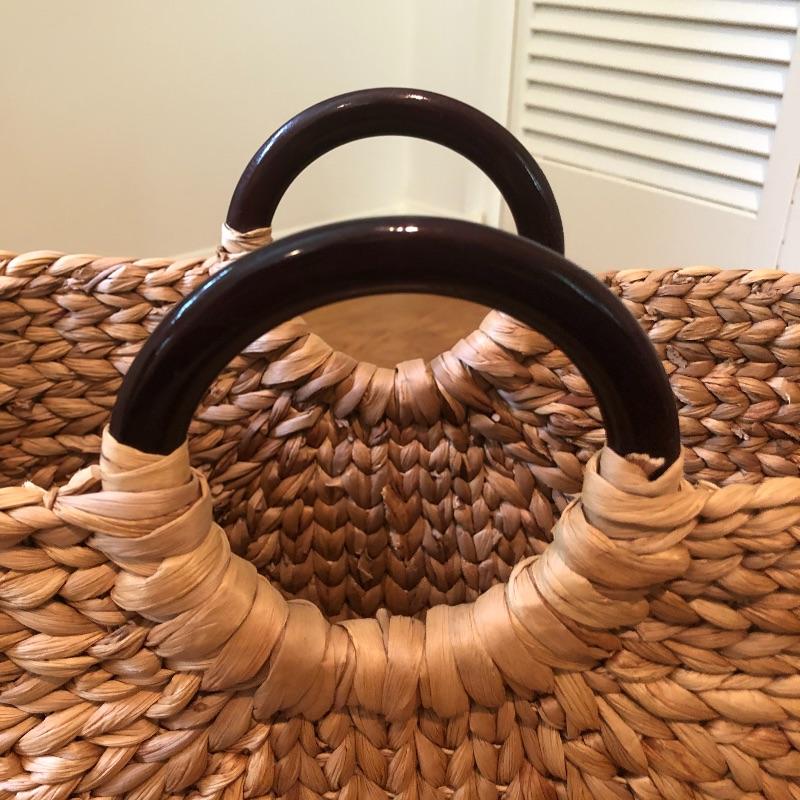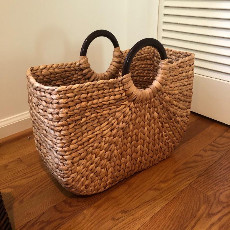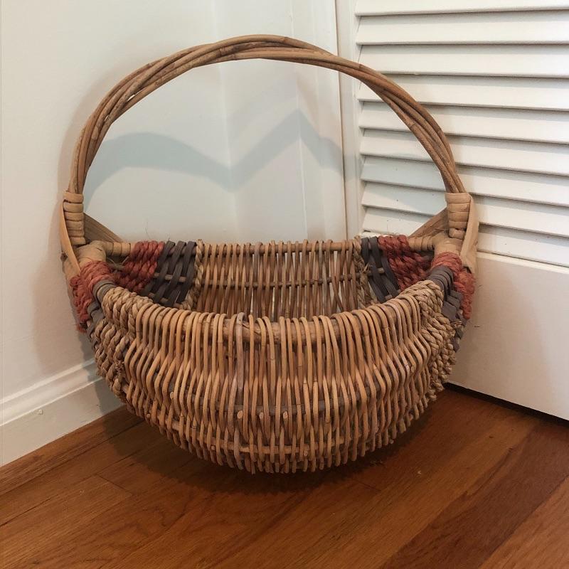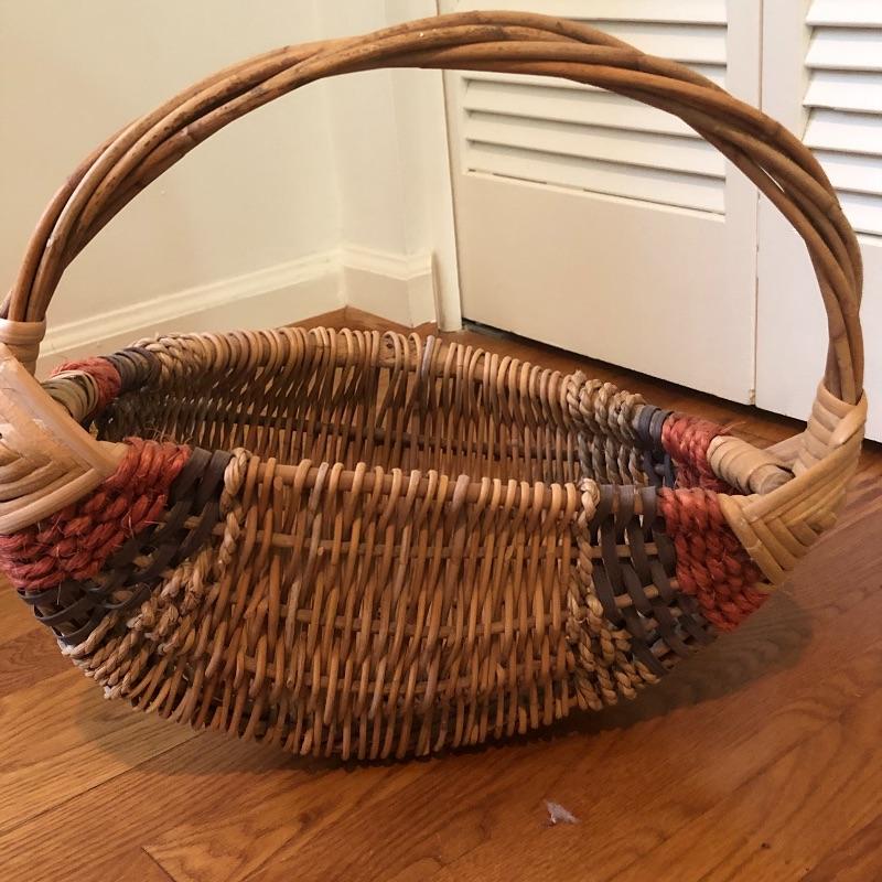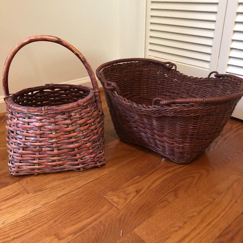 From small to large, baskets of all shapes and sizes in this lot that also includes a basket weaved tote bag that measures 16” x 6” x 12”. Last basket pictured is a certified Indian Enterprise handcrafted piece.