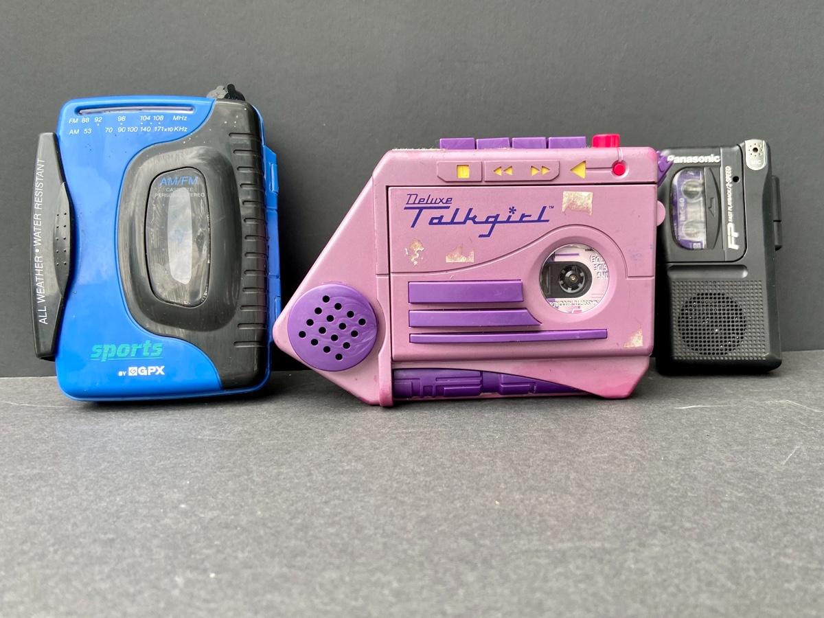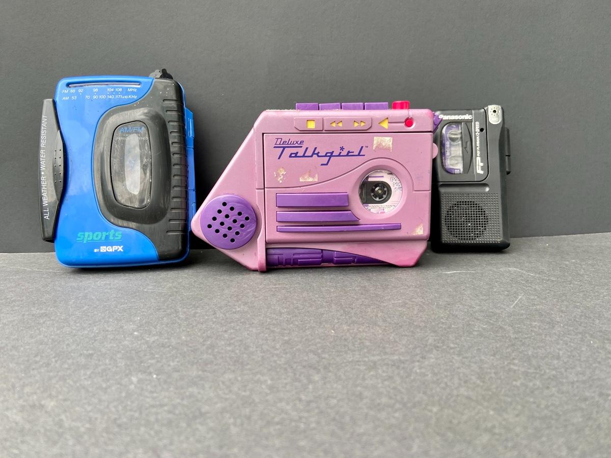 Talkgirl with home alone cassette, sports cassette player and Panasonic playback recorder