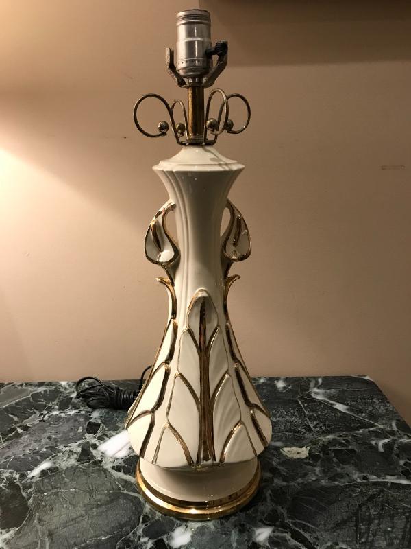 Lot 162- MCM Cream and Gold Cala Lilly Lamp