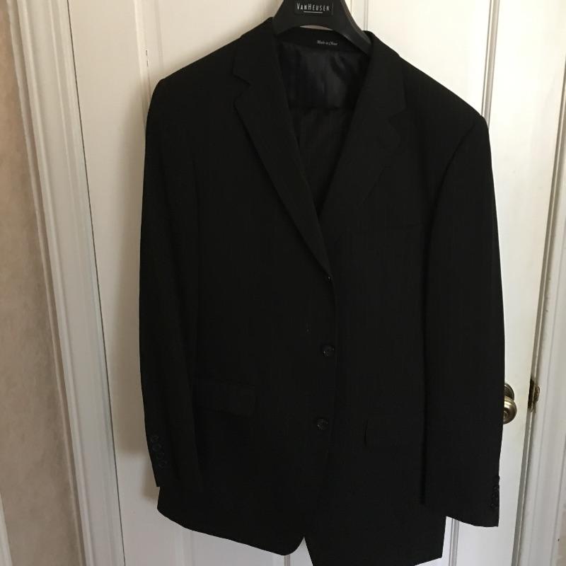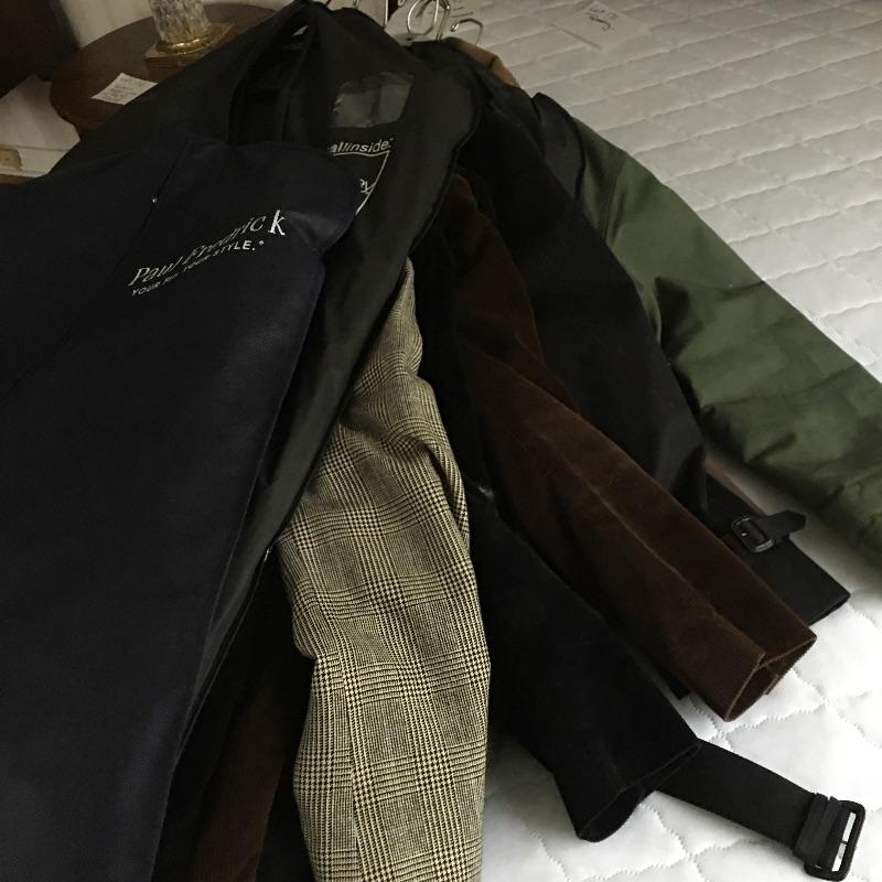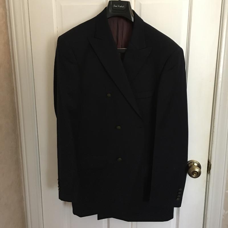Men’s overcoats and jackets include brands London Fog, Stafford, Evan Picone, Paul Fredrick, American Living, Jos. A. Bank, W. H. Welk, Cricketeer, L. L. Bean and suit separates by Van Heusen. The jackets marked are 42L and 44L and all appear to be in good shape and around the same size. You can’t go wrong being a sharp dressed man.