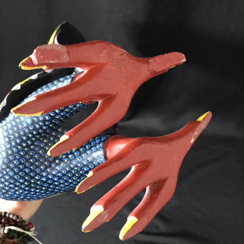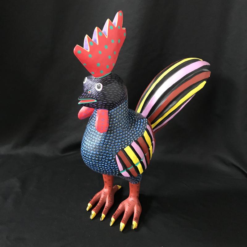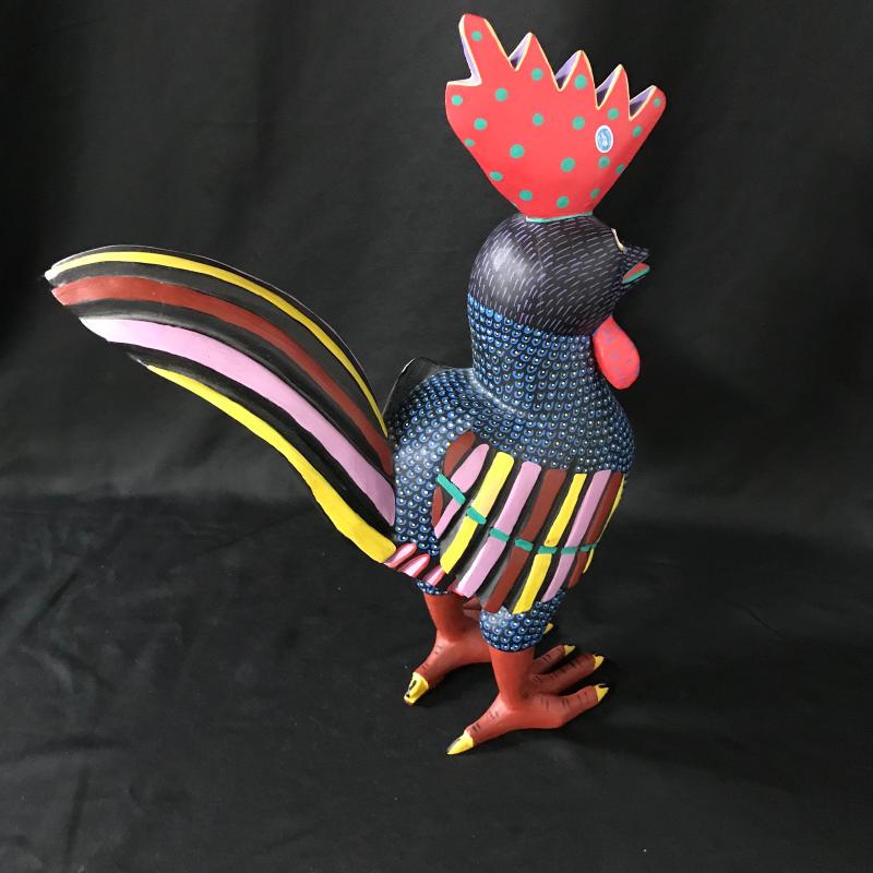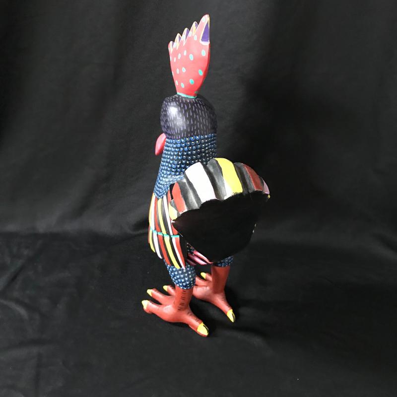 This large folk art rooster was likely made in southern Mexico (possibly Oaxaca), is made of wood and hand painted, and stands 16” tall.