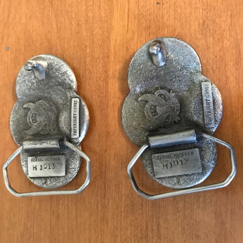 Two matching metal Silver dollar belt buckles will add bling to any outfit! Shipping available.