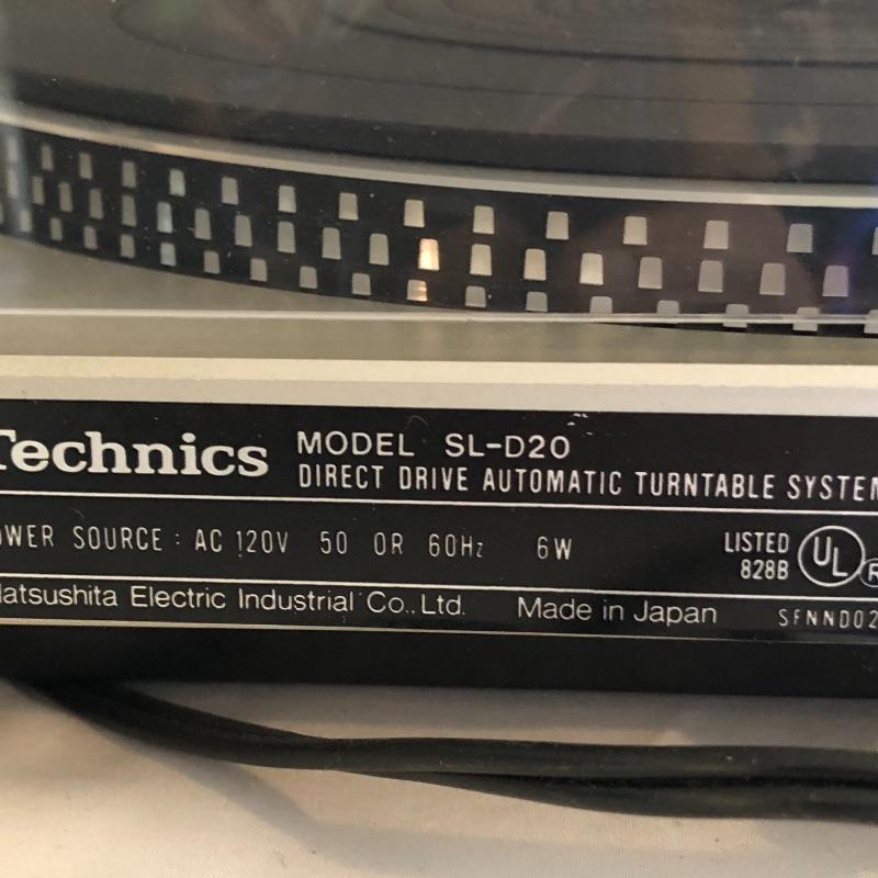 Technics turntable model # SL-D20. Get your groove on with this Technics turntable and play all your old vinyl. Turntable powered on when tested.
