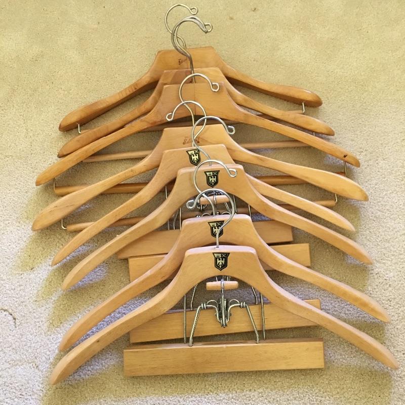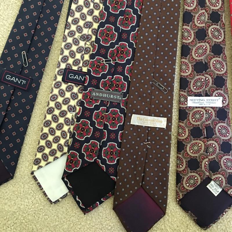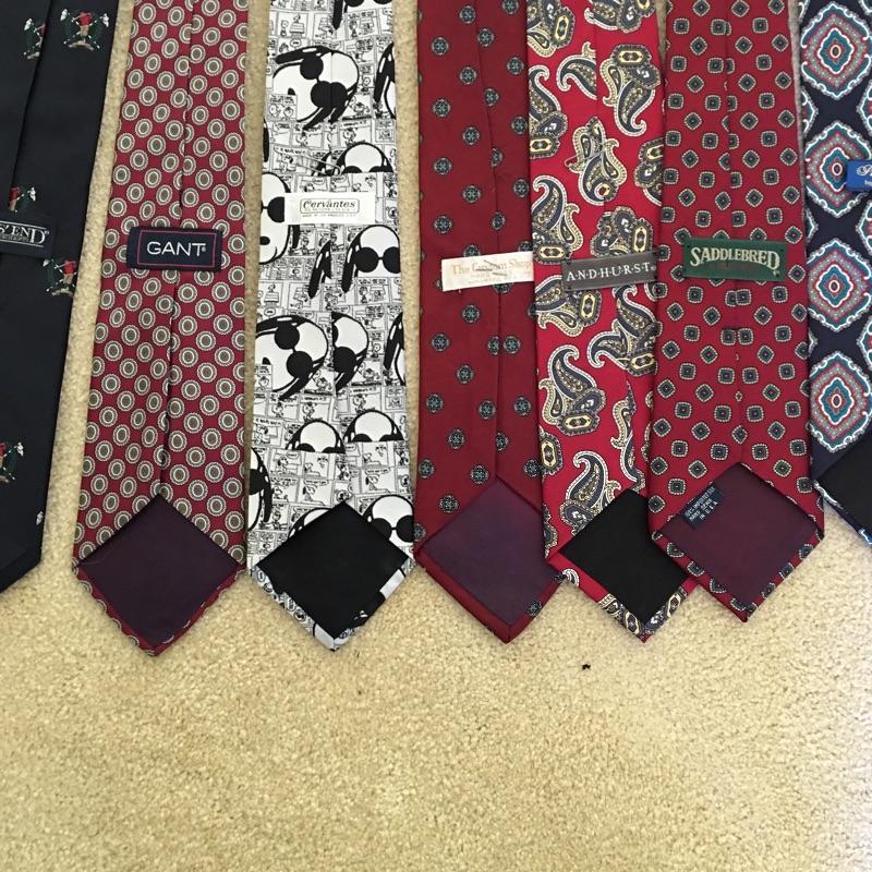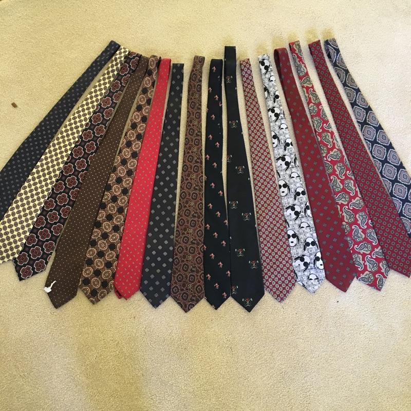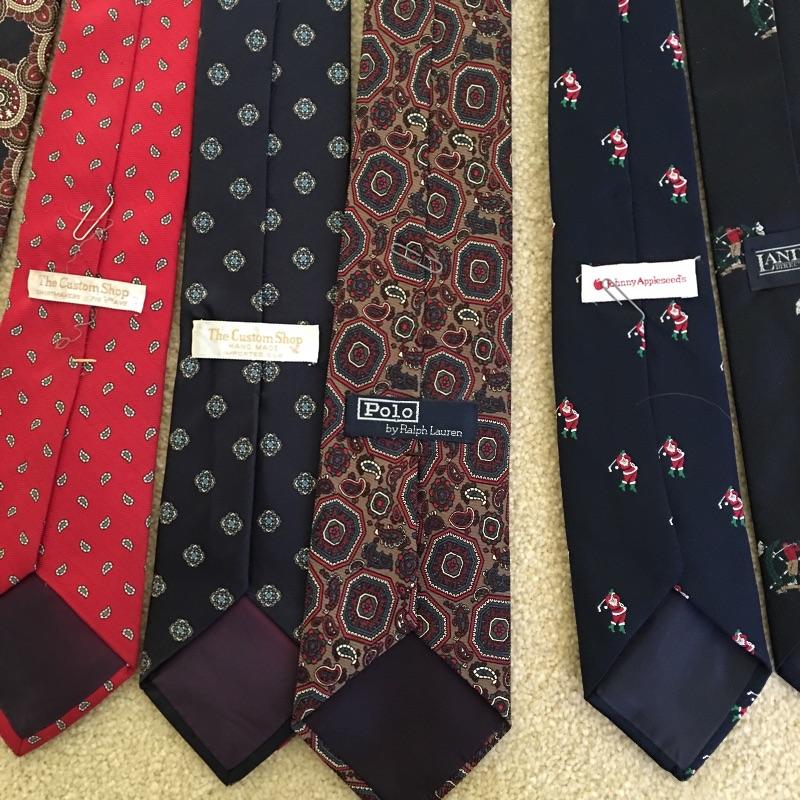 Large collection of ties in a variety of colors and makers (Polo, Meeting Street, Lands End to name a few) and eight wooden hangers. Look sharp this summer with this collection of ties and hangers.