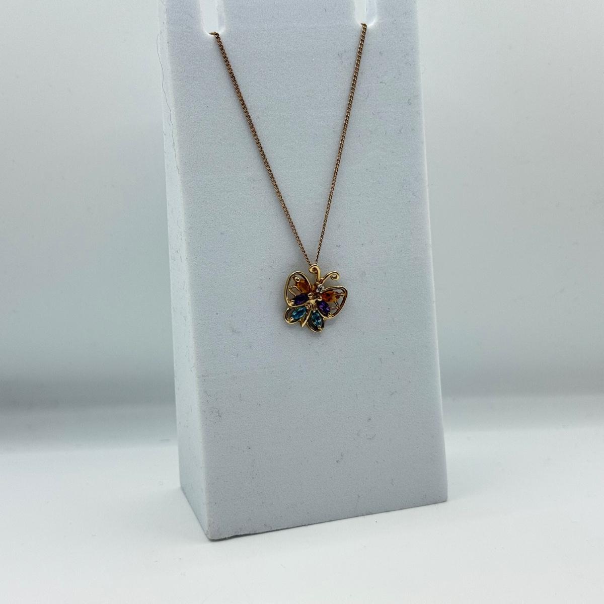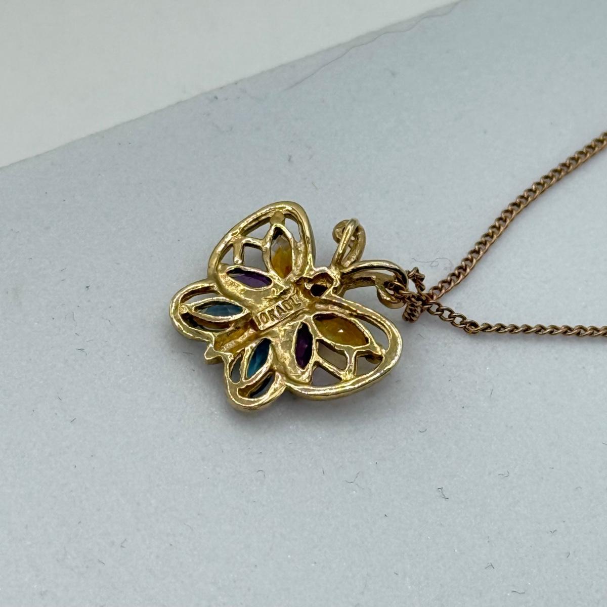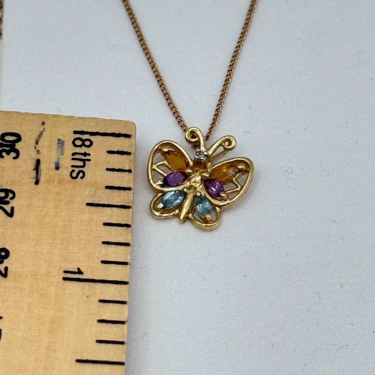 LOT 163: 10k ADL Gold Gemstone Butterfly Pendant 19" Necklace (2.7g)