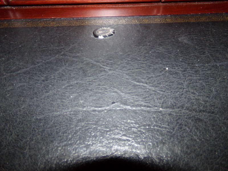 THE LEATHER WRITING AREA HAS A DIME SIZE GLOB OF WAX ON IT