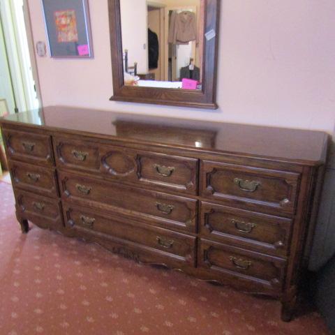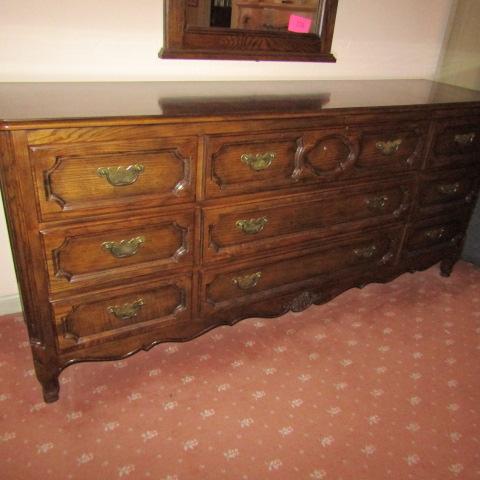 9 DRAWER, SOLID WOOD IN VERY GOOD CONDITION 73" X 19" X 33"