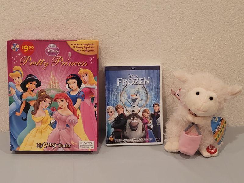 Lot 163: New Disney Frozen DVD, Princess Book and Activities and a Singing Lamb