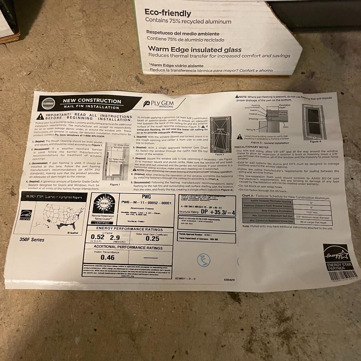 Two new-in-box Ply Gem windows. Box boasts Eco-Friendly and Warm Edge Insulated Glass. Both windows are identical in size with one side screened and locks. There are also instructions if needed. Outer frame measures approximately 26” x 38”, while the window itself is approximately 23.25” x 35”. See images. Local pick up only.