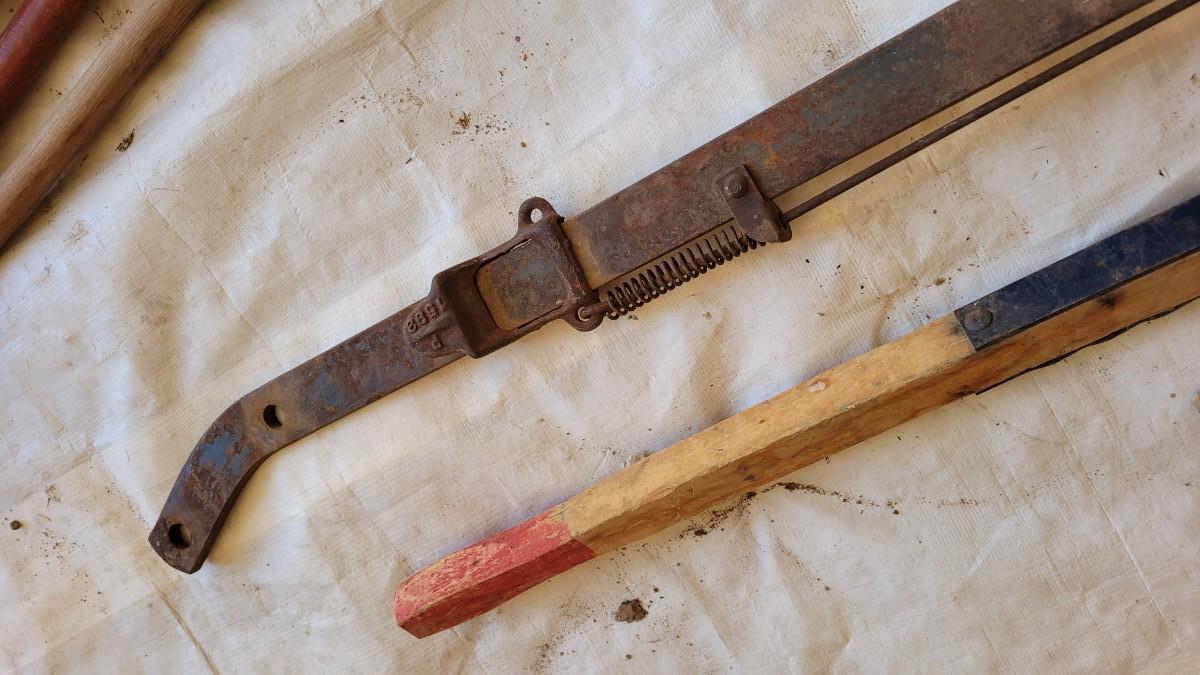 Lot 163: (2) Vintage Farm Tools Home Deco
