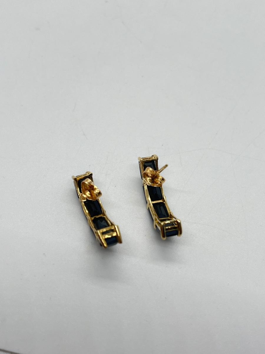 LOT 163: 10K Gold Blue Sapphire Earrings - 4.23 gtw