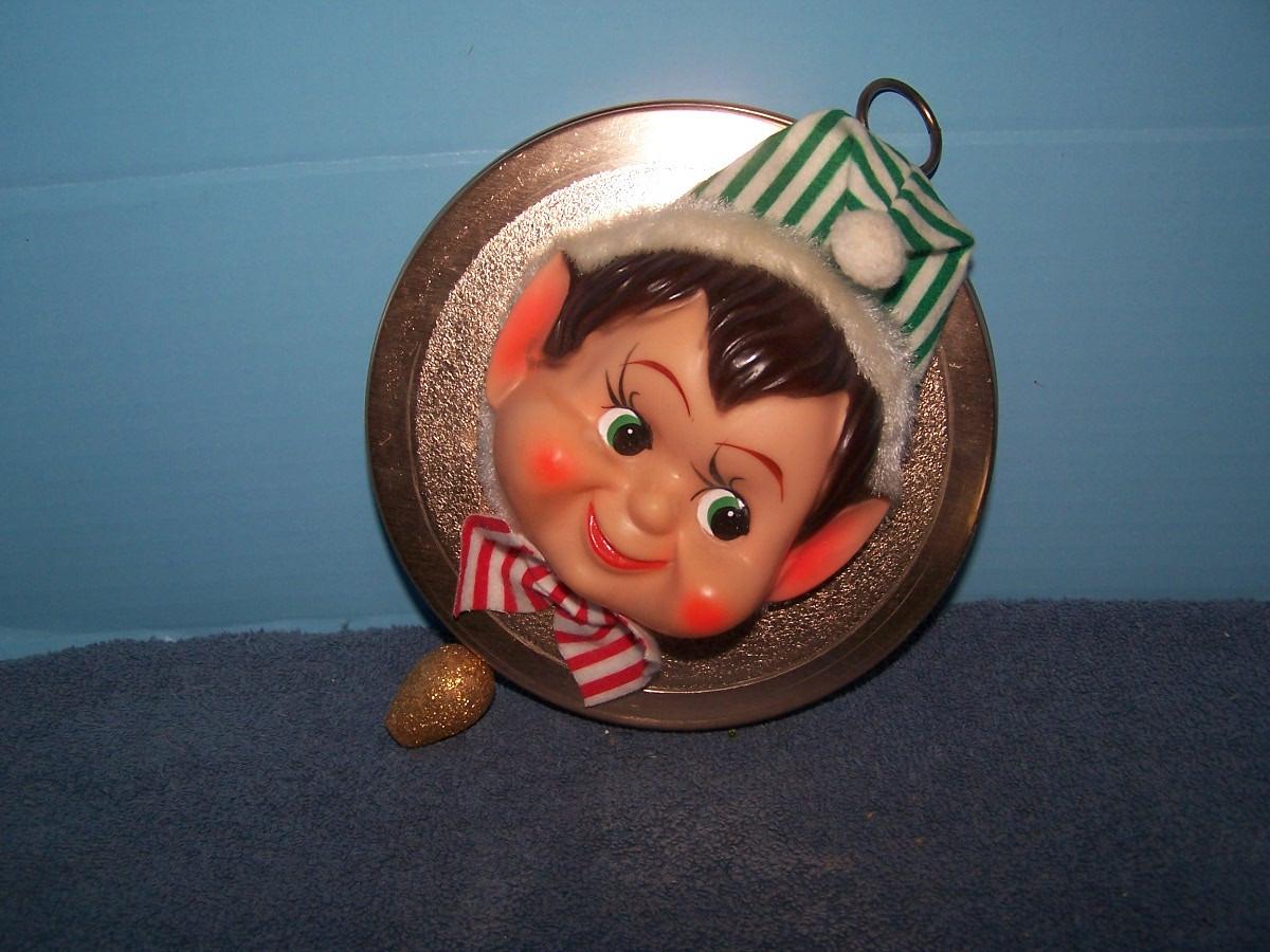 THIS IS AN AMAZING VINTAGE MCM CHRISTMAS DECORATION!!! MUSICAL ELF DOOR/WALL HANGER, JAPAN, PLAYS JINGLE BELLS.. MARKED.. WORKS.. 6 7/8'' ACROSS.. LIGHT WEAR..