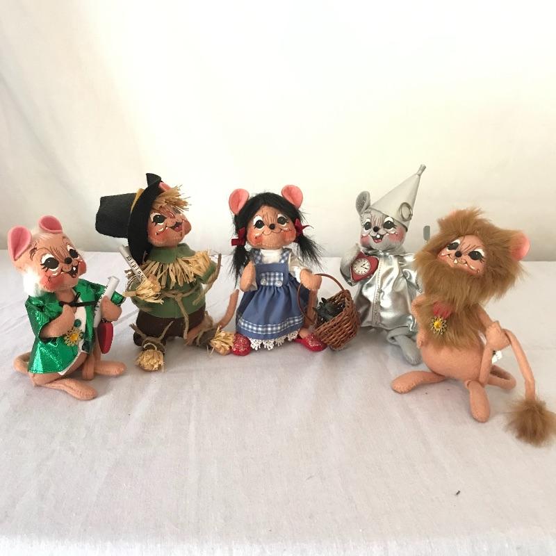 This darling set of five Wizard of Oz Annalen mice comes complete with Toto and the Wizard himself! The Wizard is ready to present his awards to the brave characters and each mouse smiles proudly. Shipping available.
