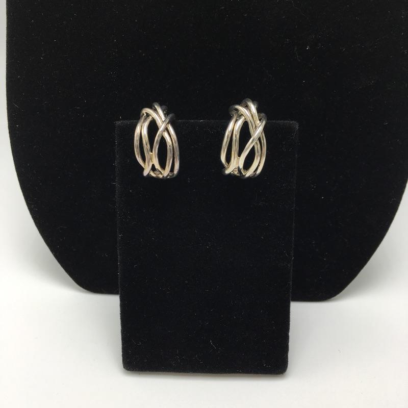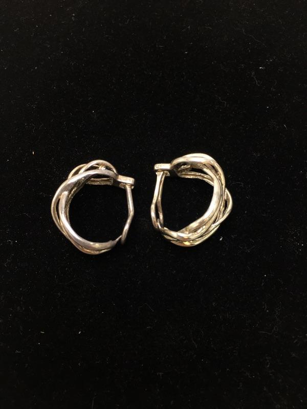 Silpada Cosmo Cool necklace in sterling silver with adjustable sliding clamp that adjusts from 16” - 26” and a pair of sterling silver clip earrings.