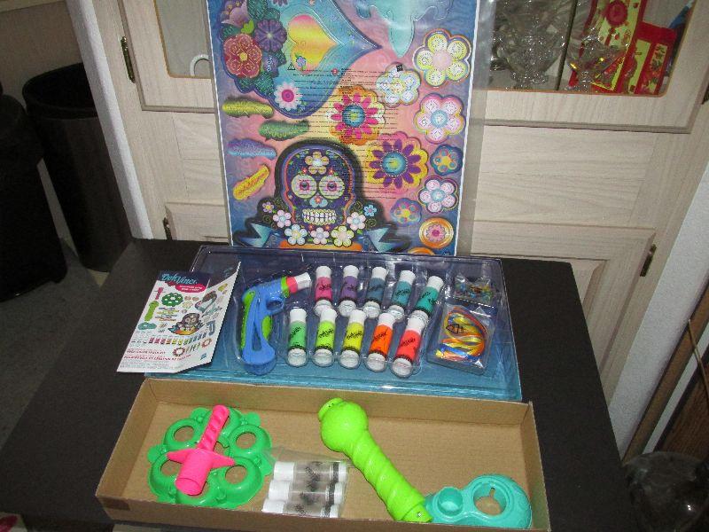 Doh Vinci Mega Color Mix Set. Older but unused. The box is a little beat up. Great for kids crafting.