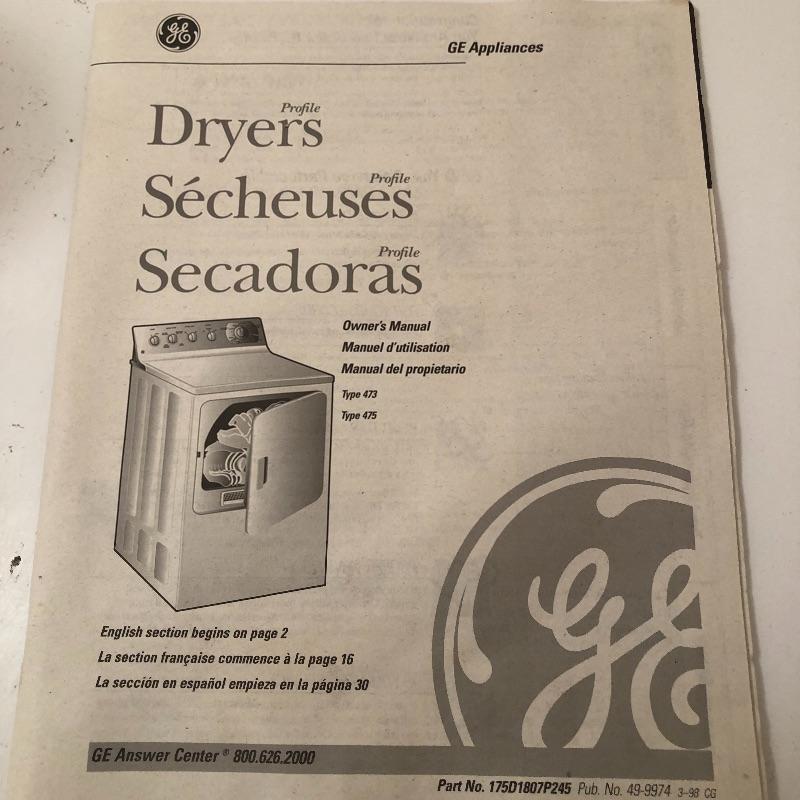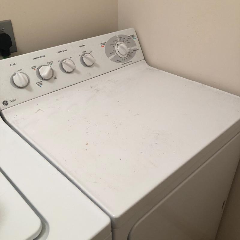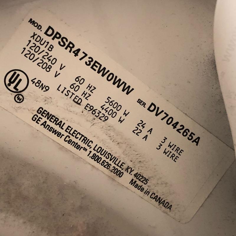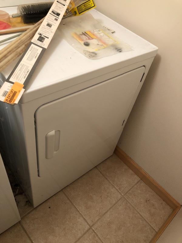 This lot includes a GE profile dryer and two dryer vent cleaning kits. The dryer’s serial number is DV704265A and model number is DPSR473EW0WW. Dimensions are approximately 27” x 26” x 42”. Buyer will need to disconnect.