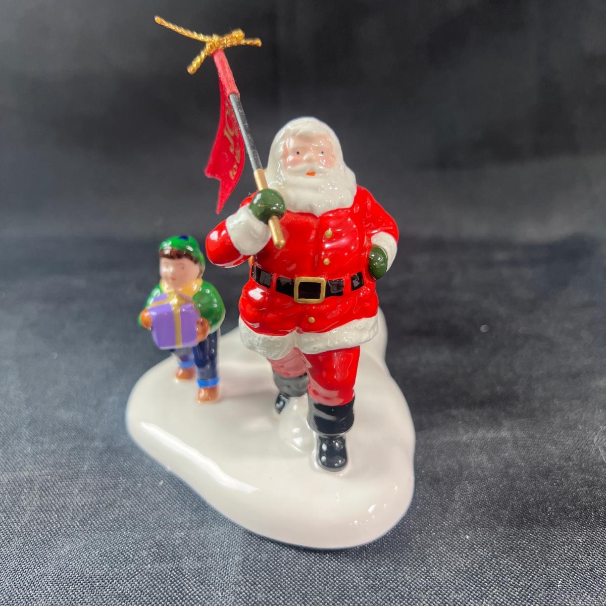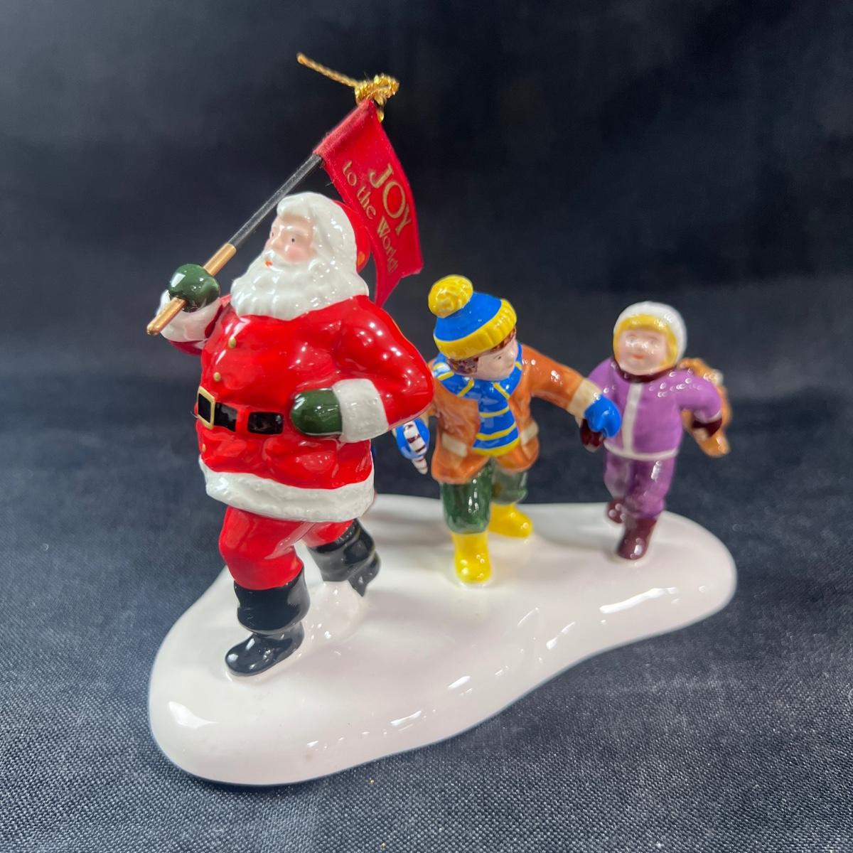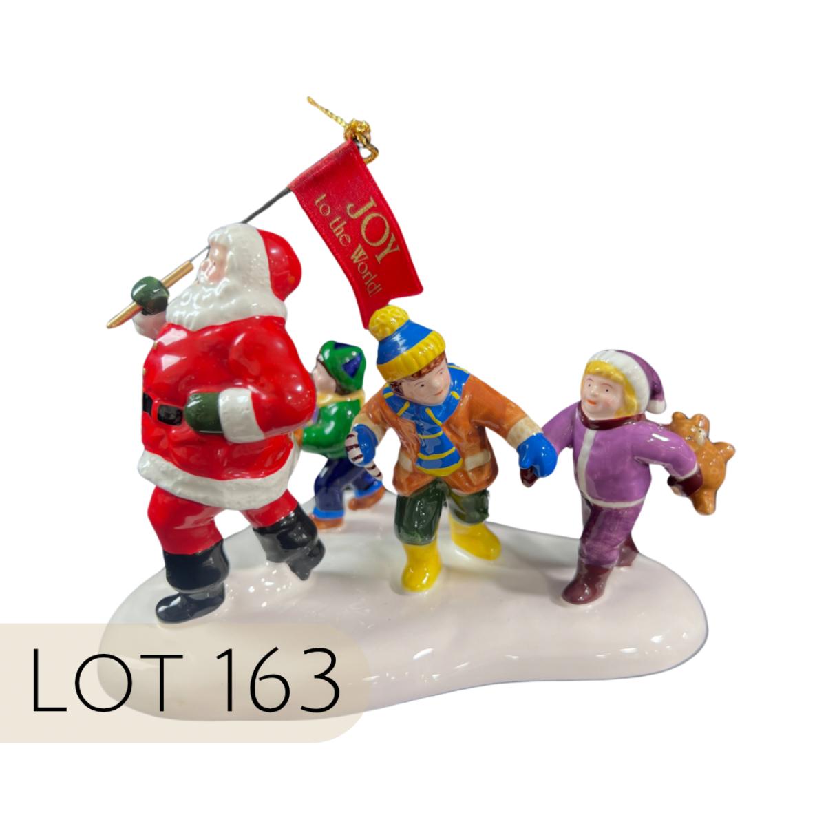 Here Comes Santa, with a banner that reads Joy to the World. A sentiment we could all use a bit more of these days. Figure is in like-new condition. Please see photos for details and condition. ::: Shipping is available on this lot. If you require shipping you must let us know at the close of the auction. We will coordinate with you after the item has been won. Shipping fees will include insurance up to or exceeding the value of all items being mailed. If you have any questions regarding this lot please contact the auctioneer either via this website, by direct email or by phone. PICK UP TIMES and other important information can be found in the TERMS and DESCRIPTION of the auction. Please take a look for pertinent information. Thanks! Any condition statement is given as a courtesy to a client, is an opinion, and should not be treated as a statement of fact. Reference to condition written, oral or within a condition report shall not be regarded as a full account of condition and may not include all defects, alterations, or restorations. Absence of a condition report does not imply a lot is flawless or lacking imperfections or damage. Katherine’s Auction & Appraisal Service shall have no responsibility for any error or omission. Returns shall not be accepted on the basis of condition.