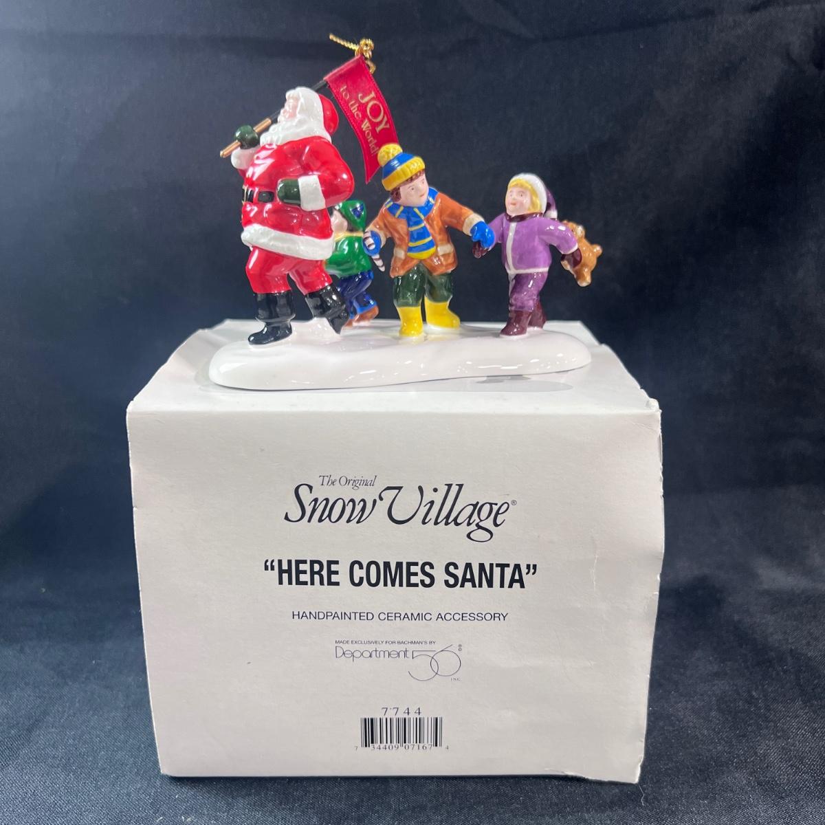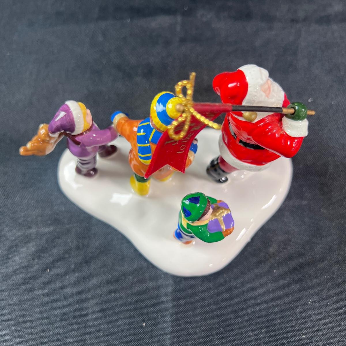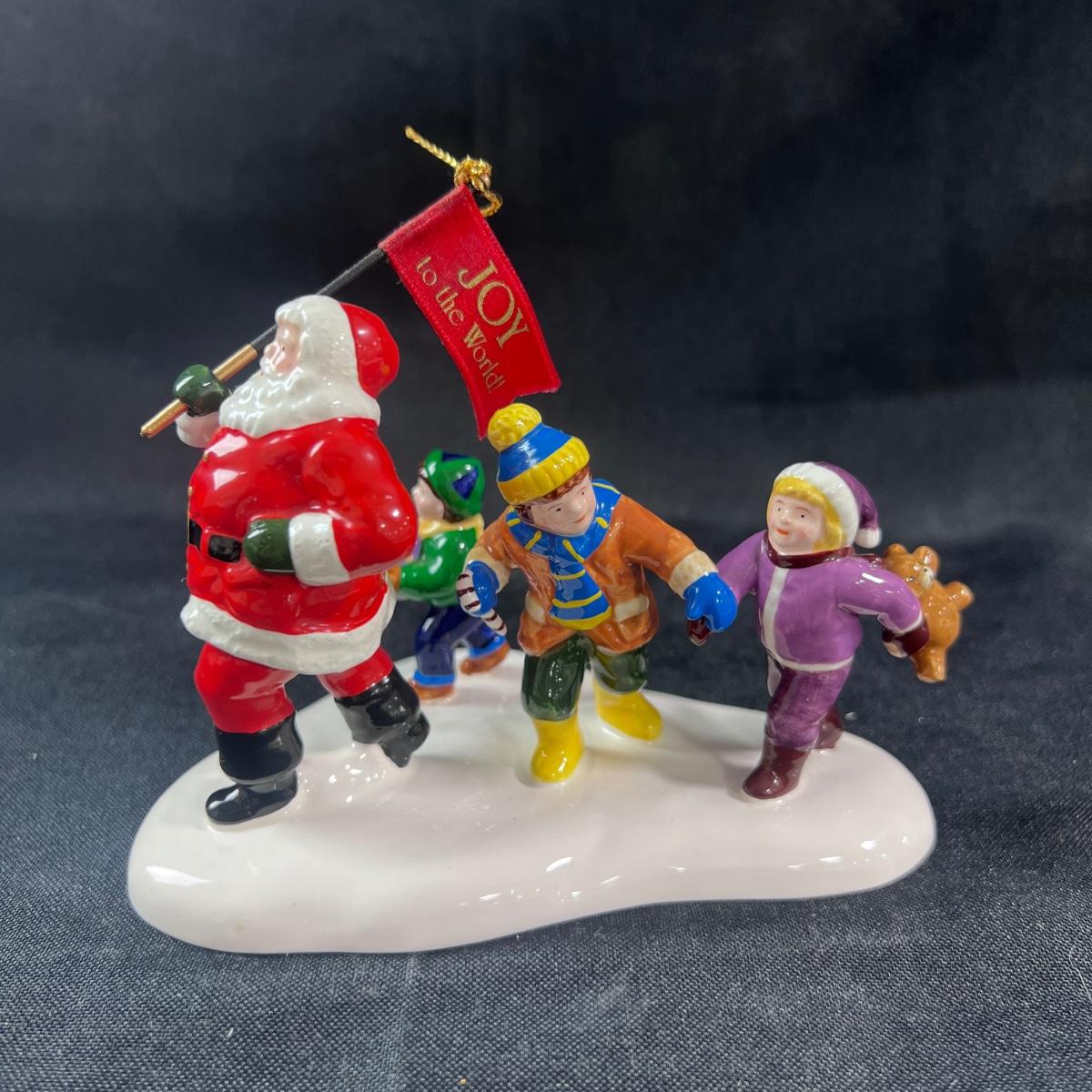 Here Comes Santa, with a banner that reads Joy to the World. A sentiment we could all use a bit more of these days. Figure is in like-new condition. Please see photos for details and condition. ::: Shipping is available on this lot. If you require shipping you must let us know at the close of the auction. We will coordinate with you after the item has been won. Shipping fees will include insurance up to or exceeding the value of all items being mailed. If you have any questions regarding this lot please contact the auctioneer either via this website, by direct email or by phone. PICK UP TIMES and other important information can be found in the TERMS and DESCRIPTION of the auction. Please take a look for pertinent information. Thanks! Any condition statement is given as a courtesy to a client, is an opinion, and should not be treated as a statement of fact. Reference to condition written, oral or within a condition report shall not be regarded as a full account of condition and may not include all defects, alterations, or restorations. Absence of a condition report does not imply a lot is flawless or lacking imperfections or damage. Katherine’s Auction & Appraisal Service shall have no responsibility for any error or omission. Returns shall not be accepted on the basis of condition.