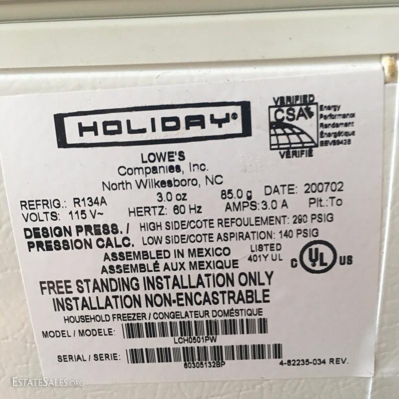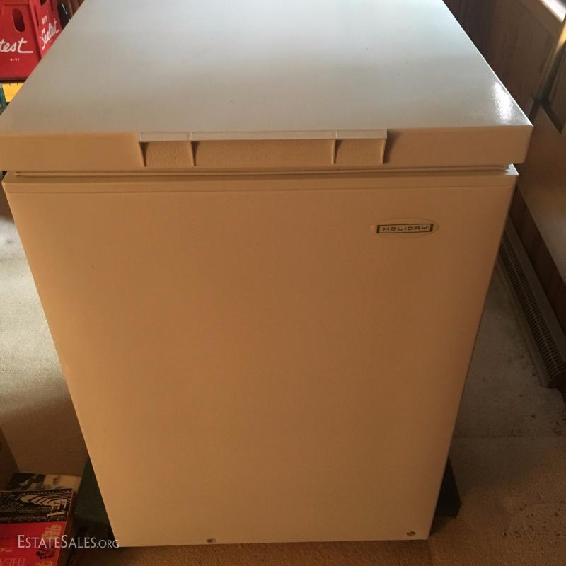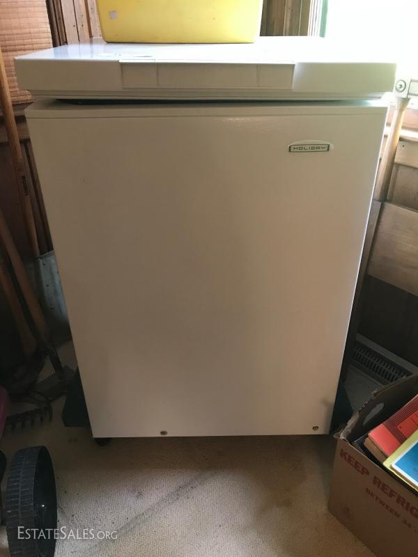 Holiday Top Loading Freezer. measures 26.5"l x 23.5"w x 39.5"h. Like new condition.