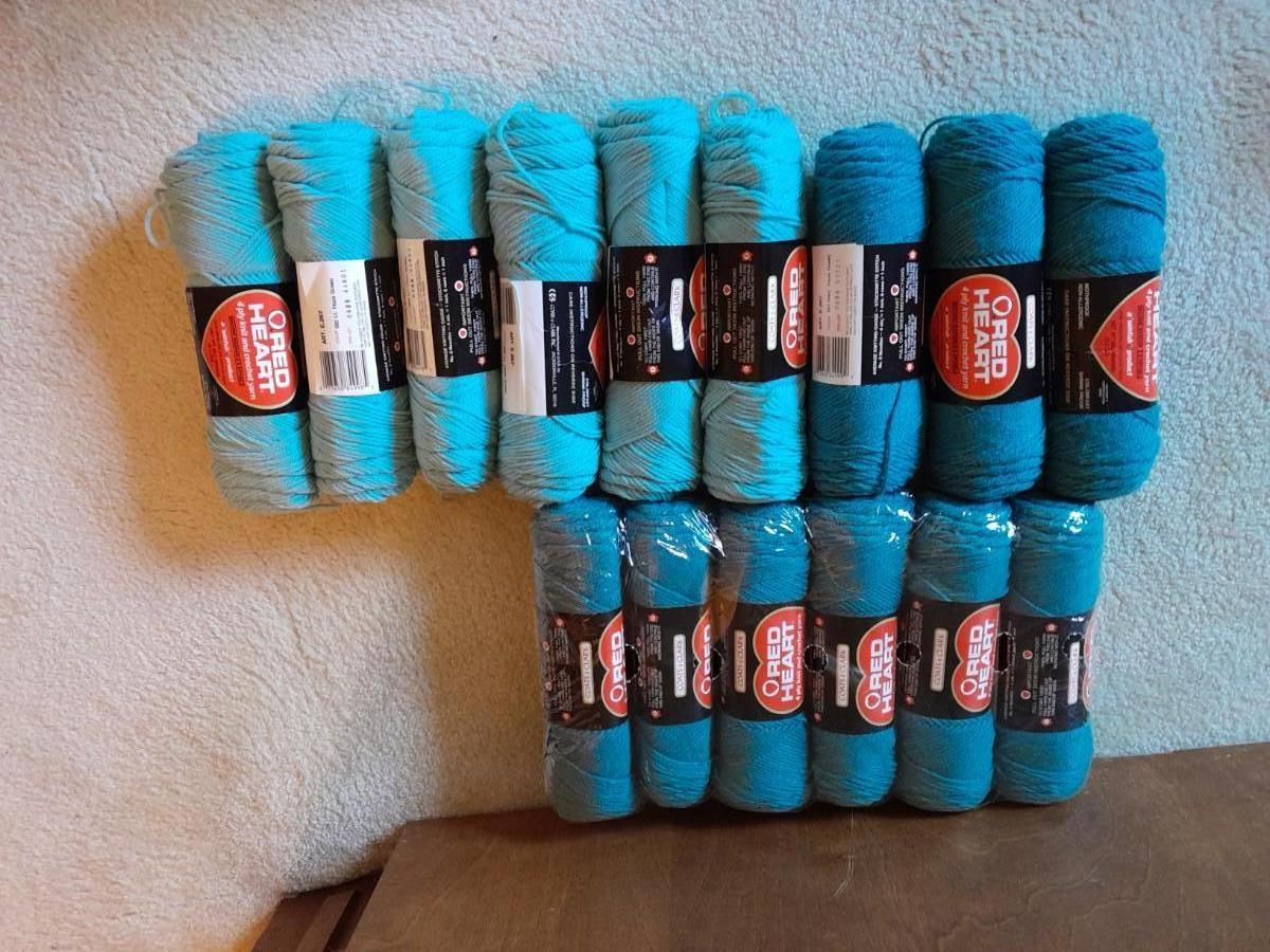 LOT 163 LIGHT AND MEDIUM HAZE GREEN RED HEART YARN
