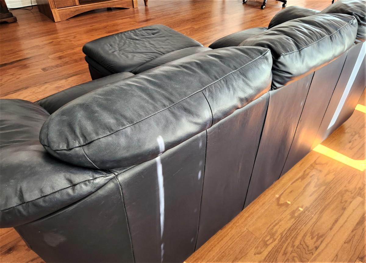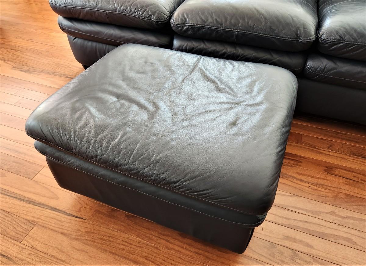 Lot #163 Navy Blue Leather Sofa & Ottoman - clean & comfy