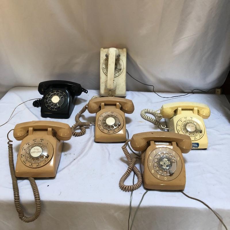 Remember the days before caller ID with this collection of rotary phones. Lot includes five desk phones and one wall phone. Phones have not been tested and are dusty.