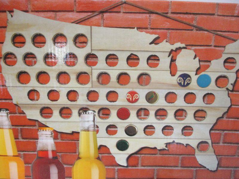 Lot 163 - Wood Beer Bottle Cap Map of USA Collection
