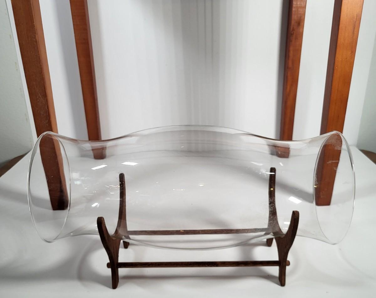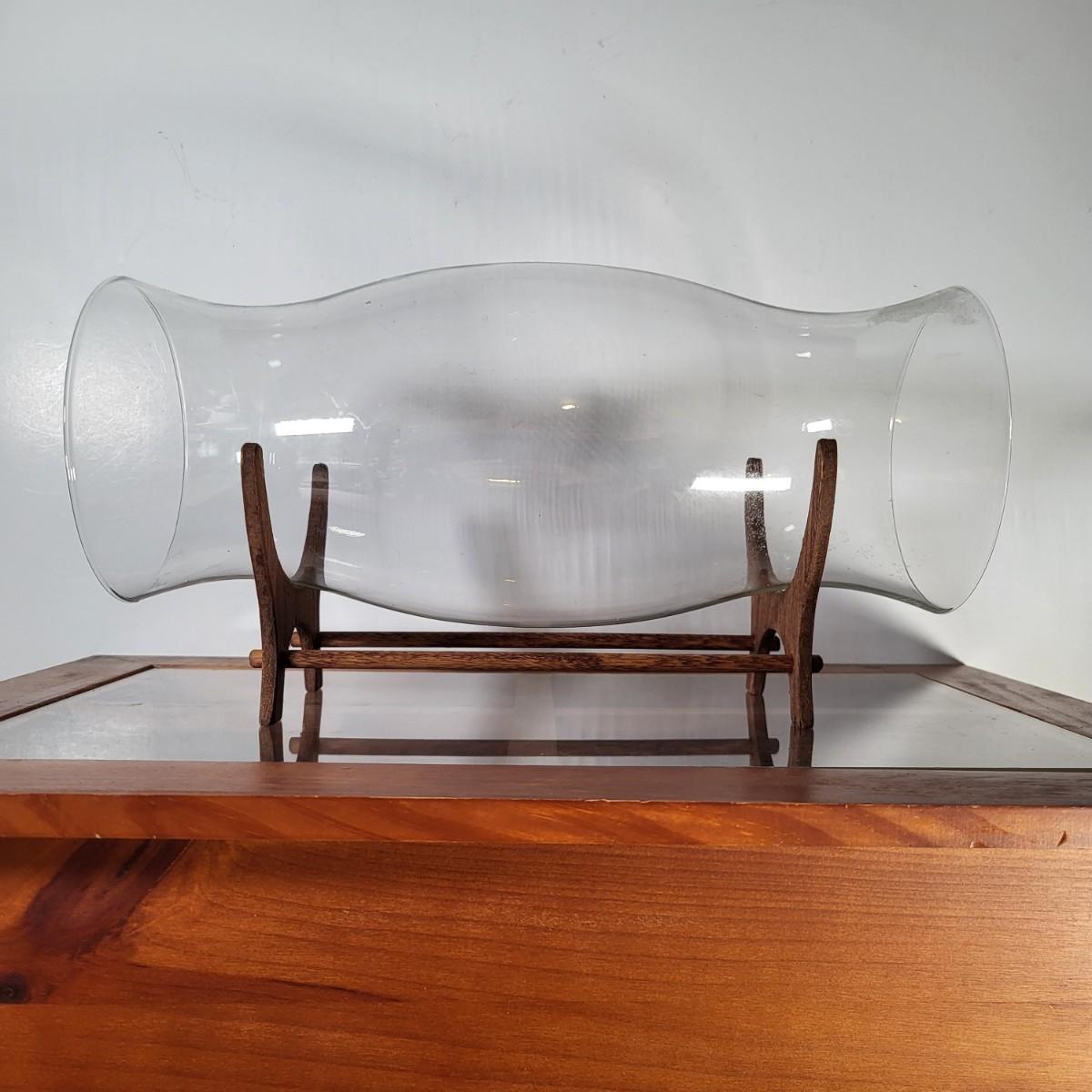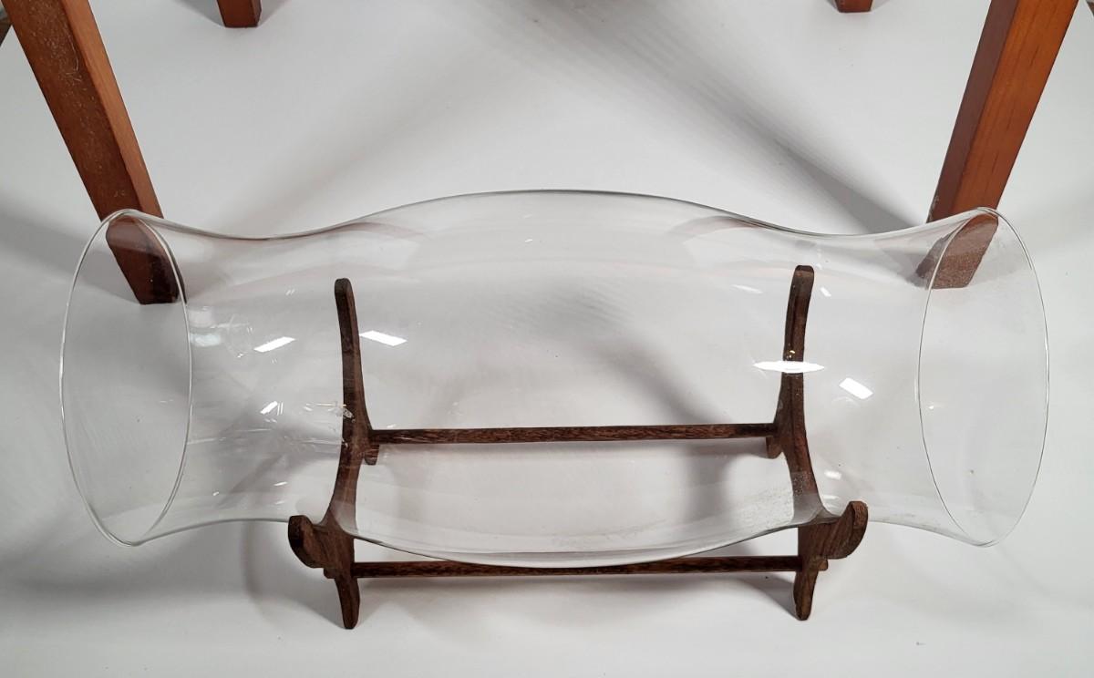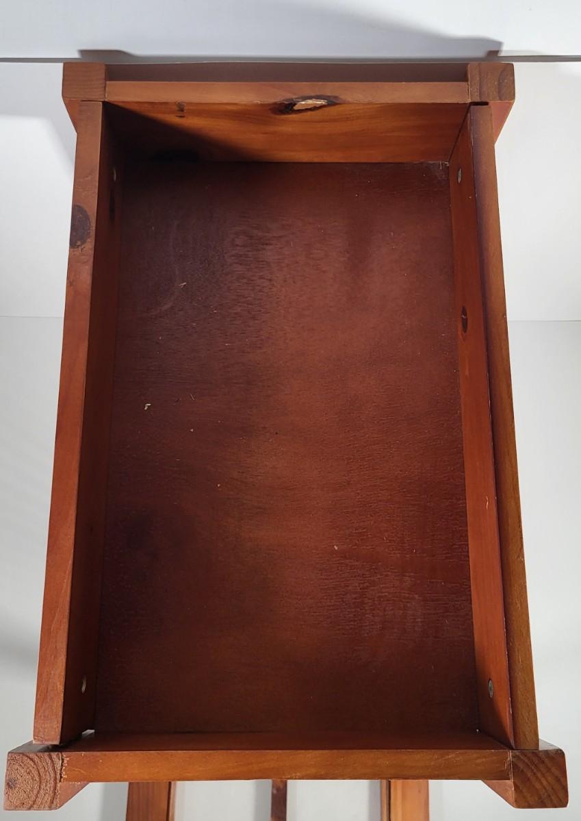 LOT 163G: Small Display End Table with Vase and Glass Display on Rack