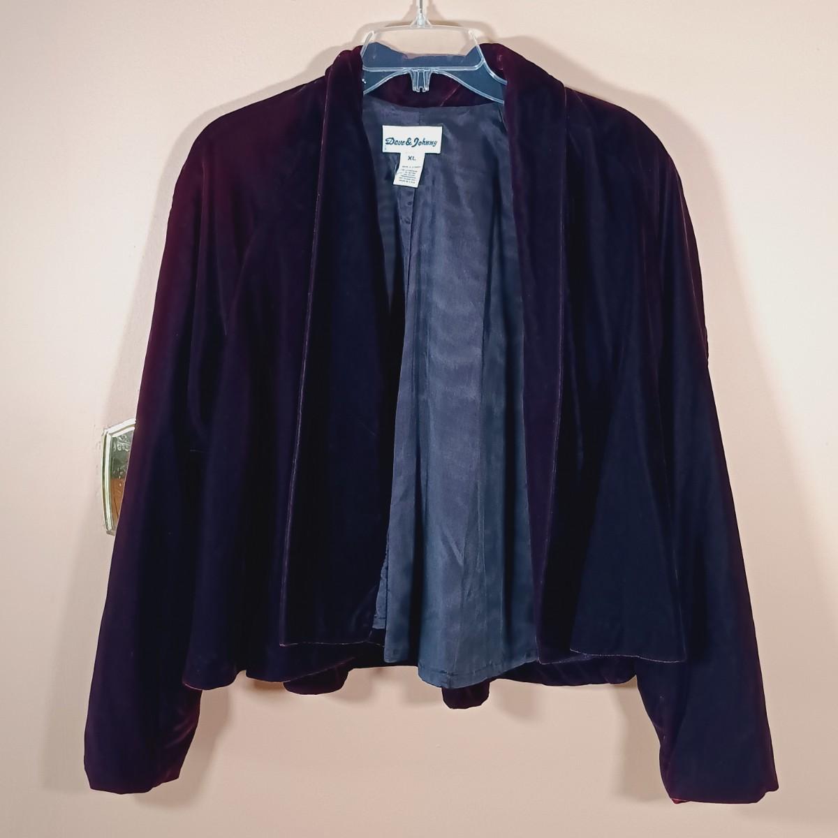 LOT 163L: Dave & Johnny Red Velvet Jacket with D'avis Black Velvet Cropped Jacket & Black Velvet Opera Coat with Red Collar