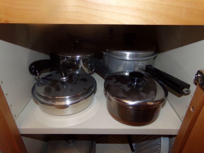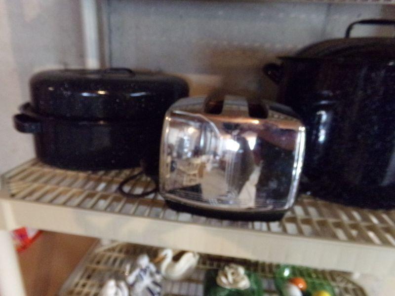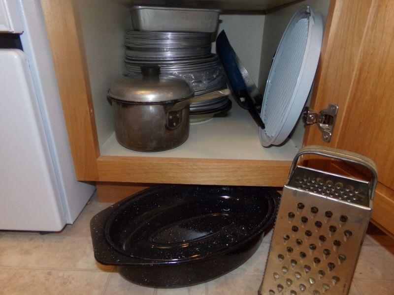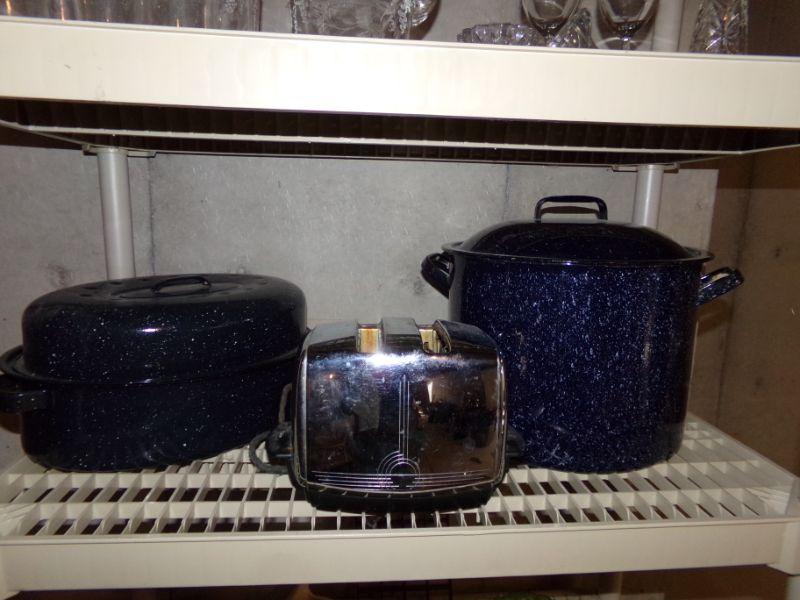 METAL CHEESE GRATER, ROASTING PAN, POTS & PANS W/LIDS, TOASTER, CANNING POT
