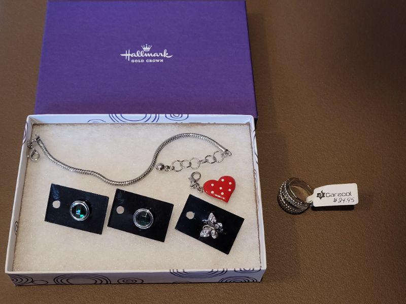 Lot 164: NEW Hallmark Bracelet with Slide & Dangle Pendants and CARACOL Size 7 Ring