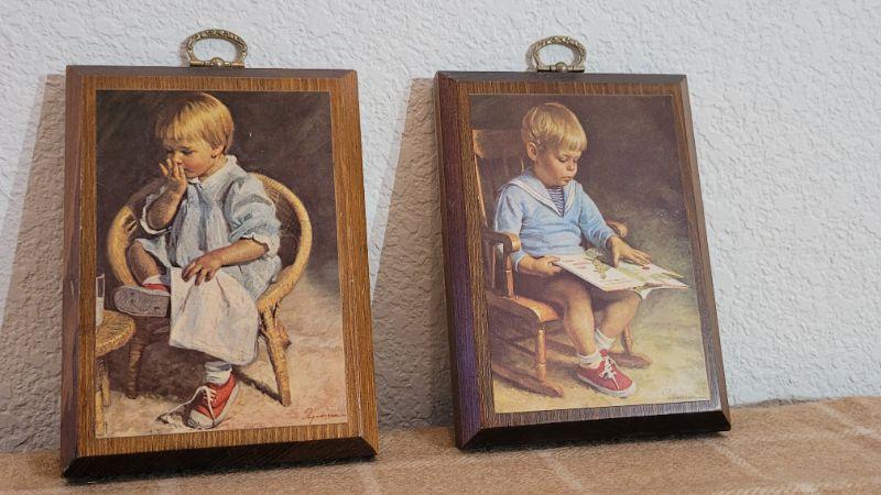 Lot 164: Vintage Wood Print Wall Art Mid Century Modern