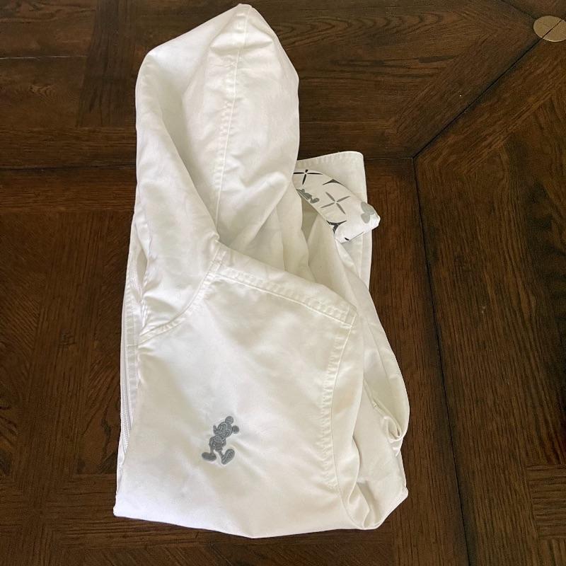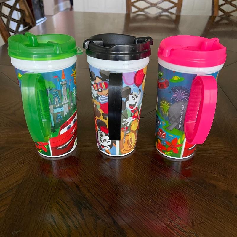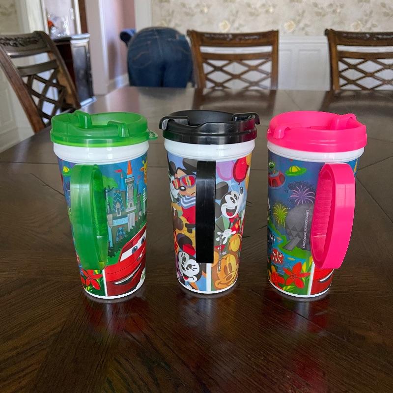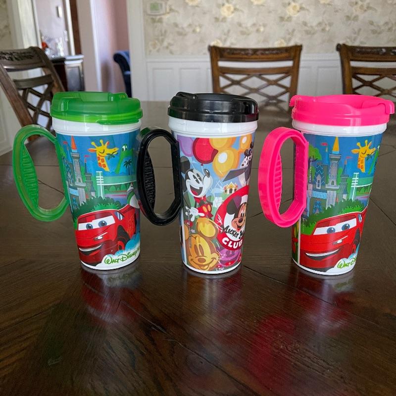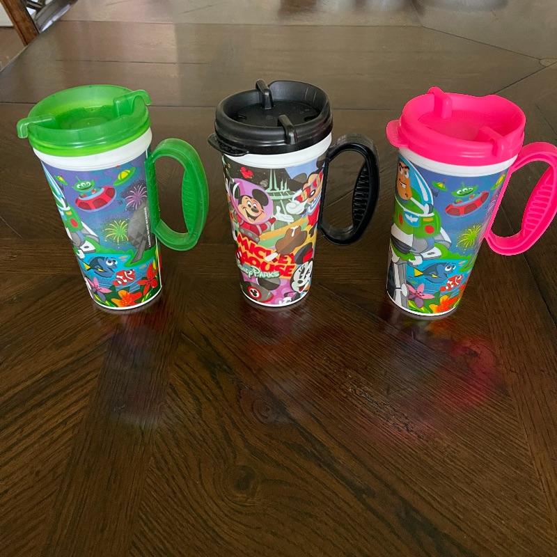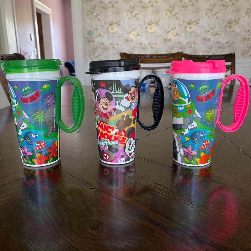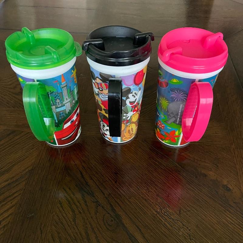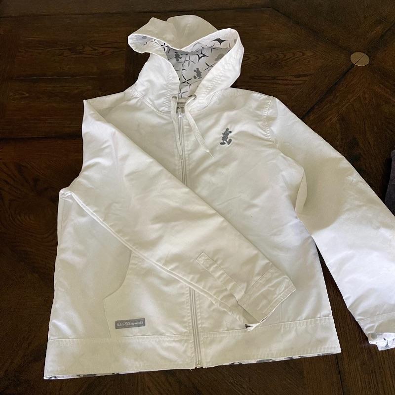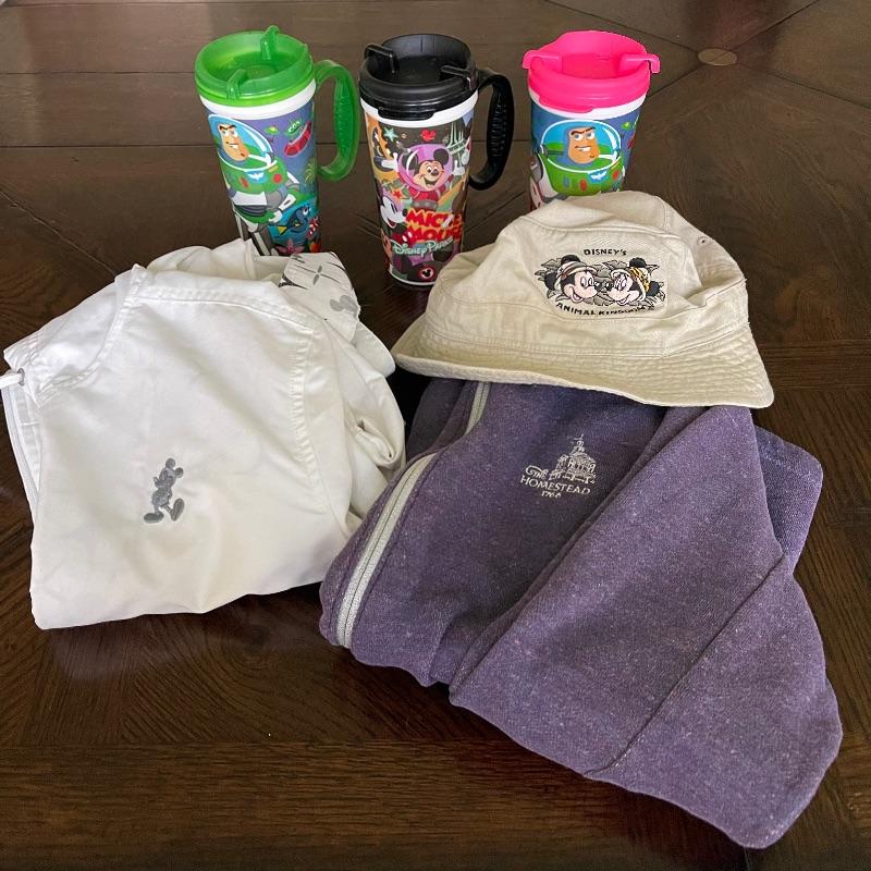 Three souvenir handled cups, an Animal Kingdom bucket had, a white hooded zip up, and purple zip up make up this Disney themed lot.