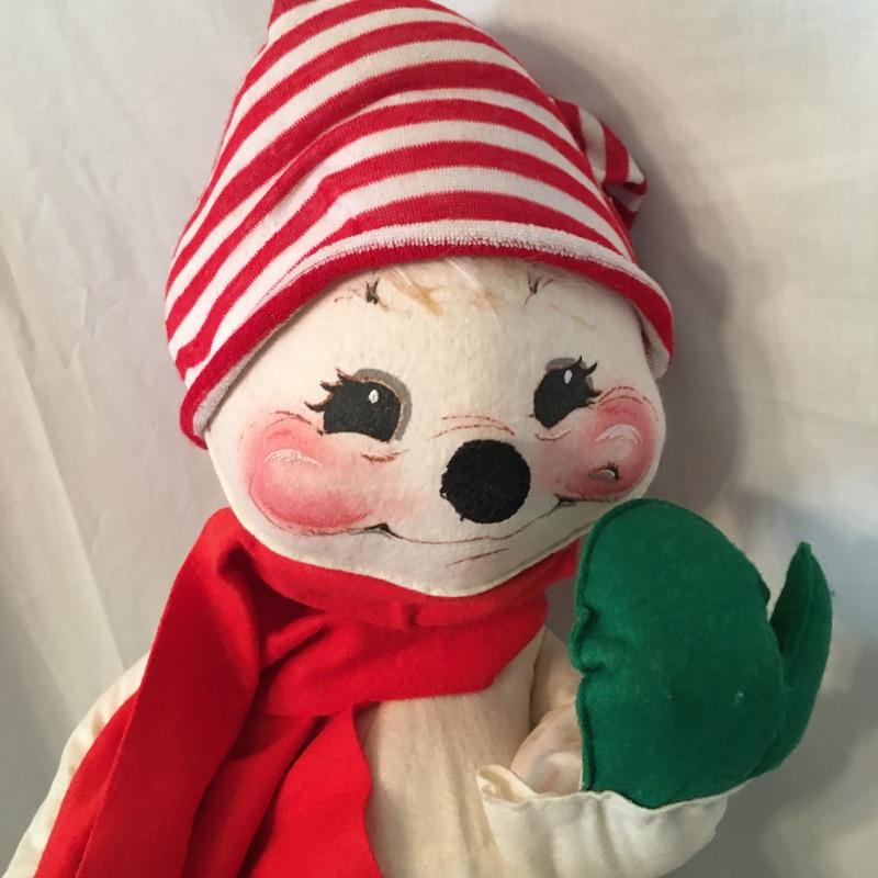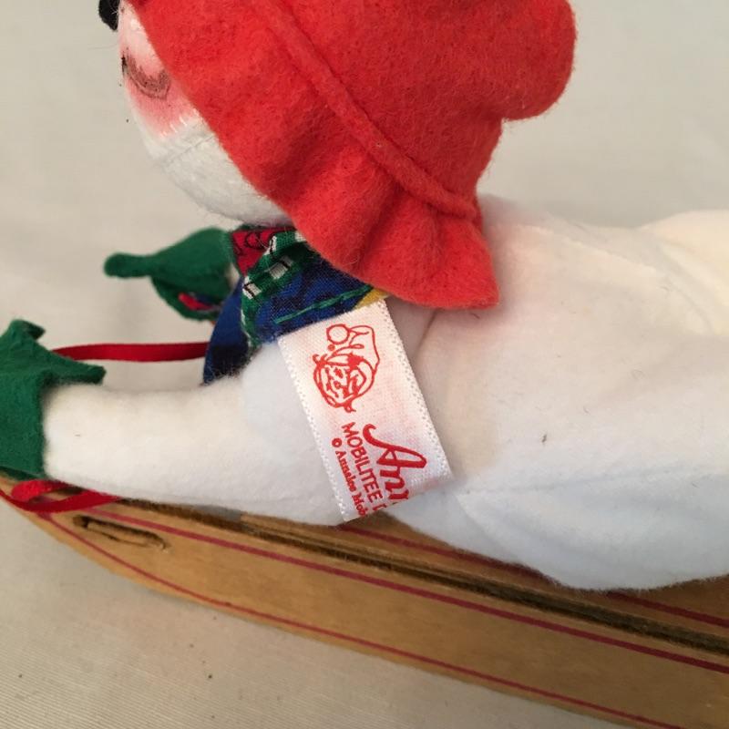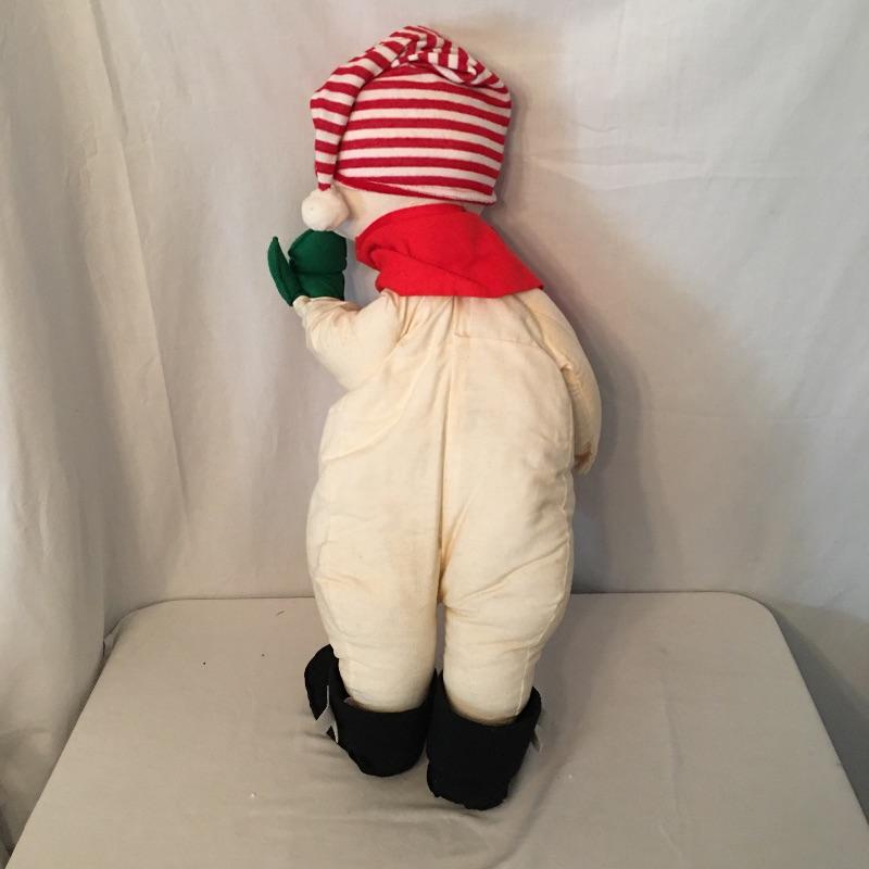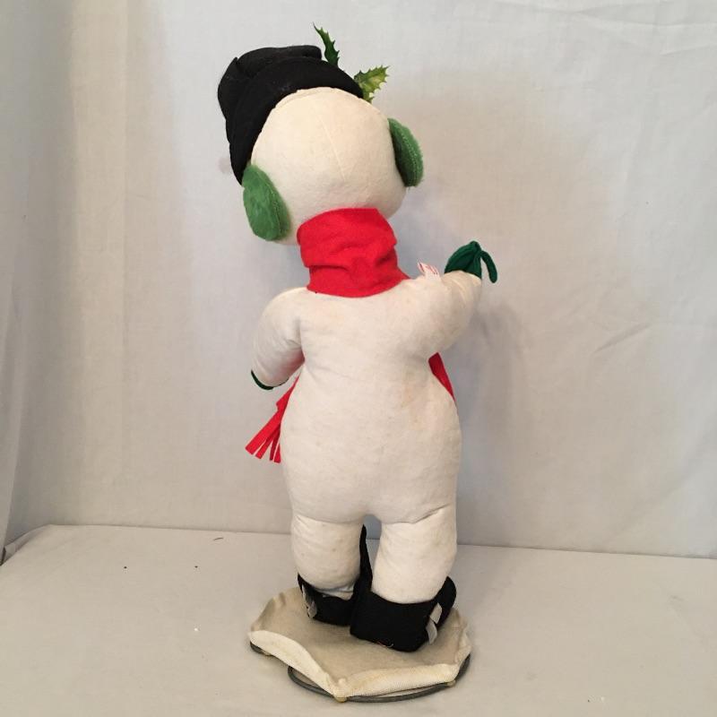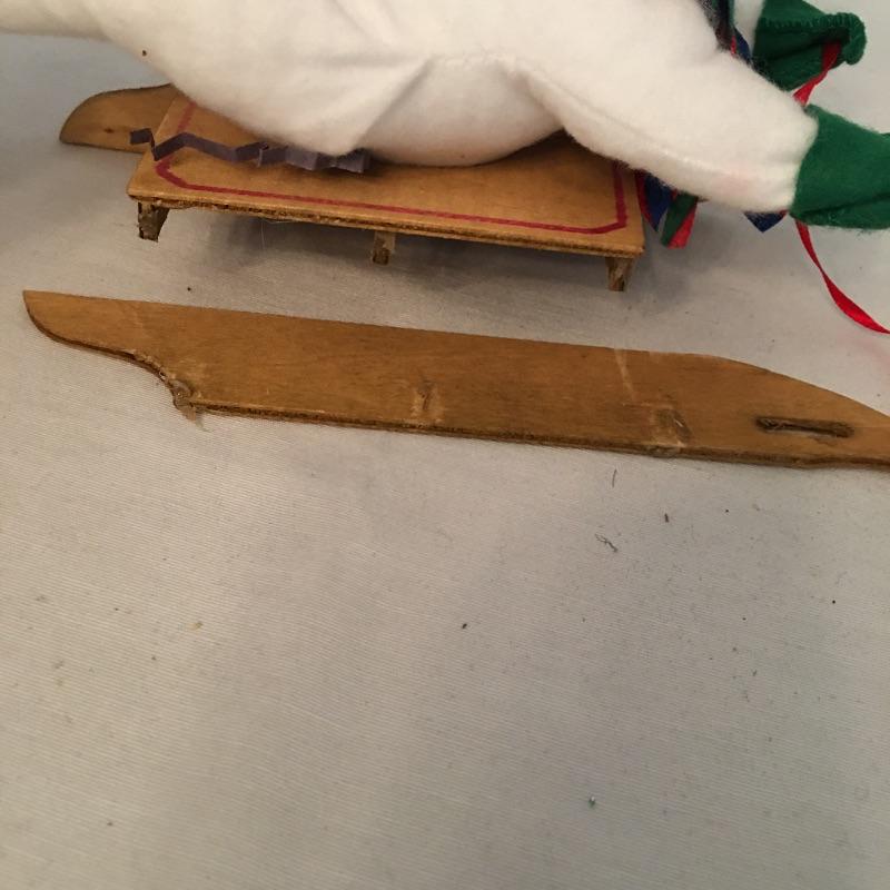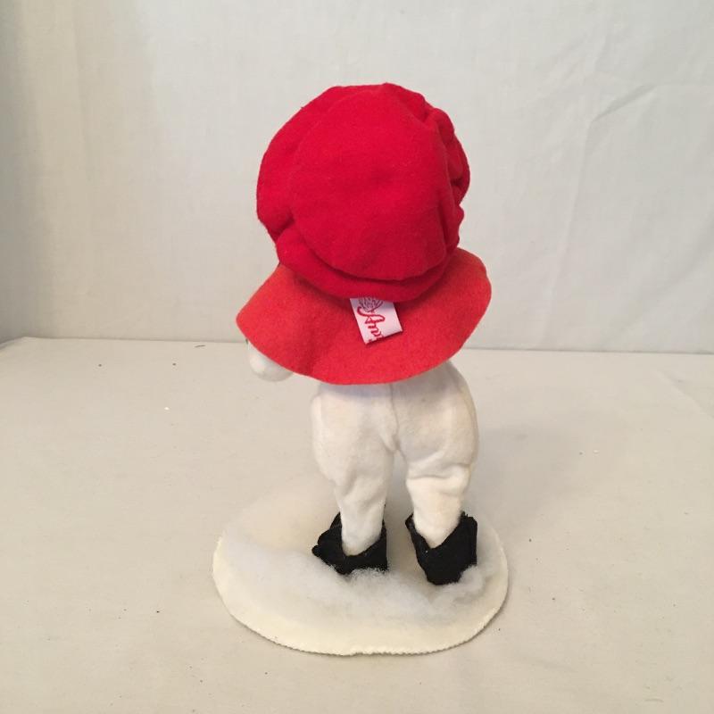 A quartet of Annalee snowmen with the smallest one on a sleigh that has come unglued, but looks like an easy fix, large and medium snowmen are well loved, see pictures. Largest snowman measures 32” tall.